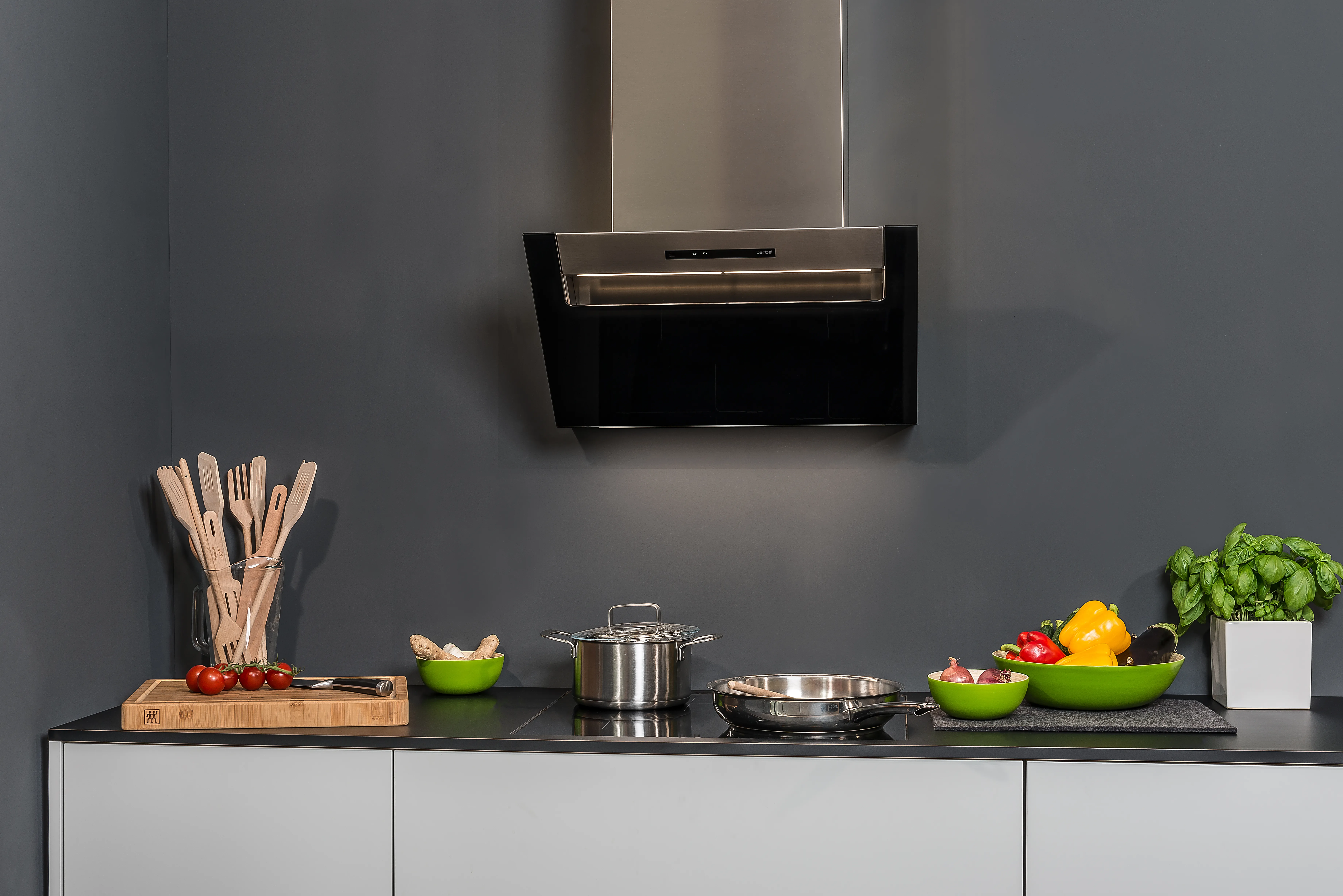 BKH 60 EG-2 ist eine moderne Kopffreihaube mit 60 cm Breite in der Farbe Schwarz aus der Serie berbel Ergoline 2. Die Dunstabzugshaube mit bekanntem berbel Prinzip saugt Kochdünste mithilfe von Zentrifugalkraft ein und reinigt die Luft von Fett- und Ölpartikeln. Wahlweise lässt sich die berbel Abzugshaube mit Abluft, Umluft oder einem Hybrid-Abzug kombinieren. Dank EcoSwitch lässt sich ganz einfach zwischen Umluft- und Abluftbetrieb wechseln. Die Kopffreihaube berbel Glassline 2 gibt es außerdem als Modell in 70, 80, 90, 110 & 120 cm Breite sowie in der Farbe Weiß, Silbermetallic & in Sonderfarbe..