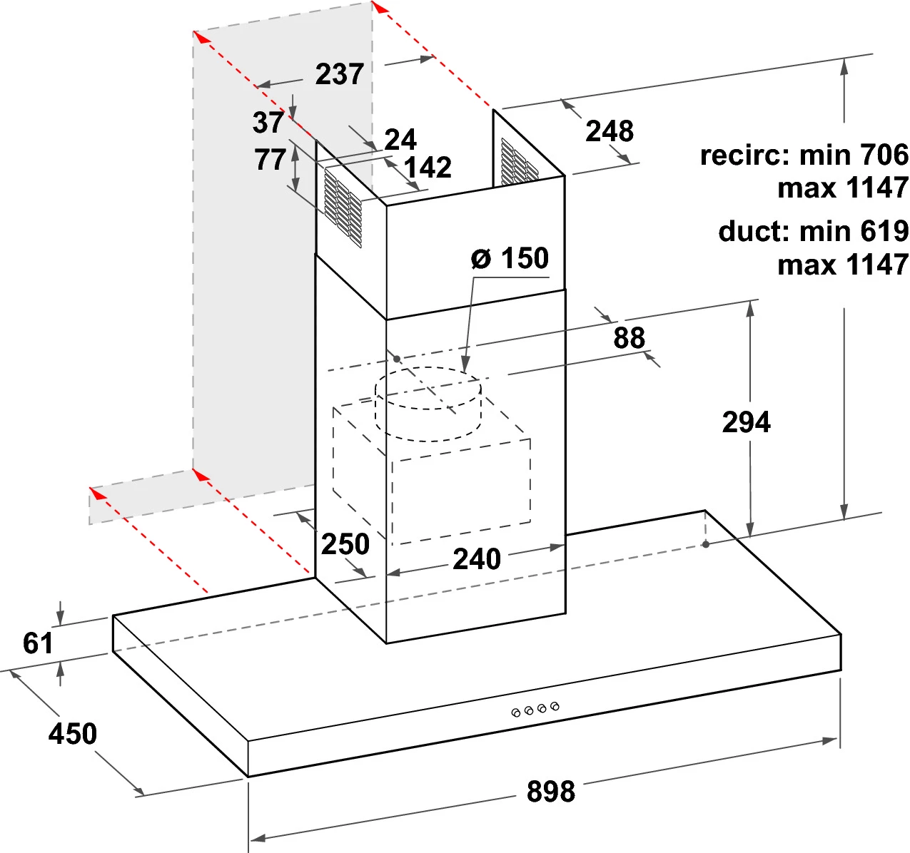 Bauknecht DBHBS 94 LM X Flachschirmhaube Edelstahl