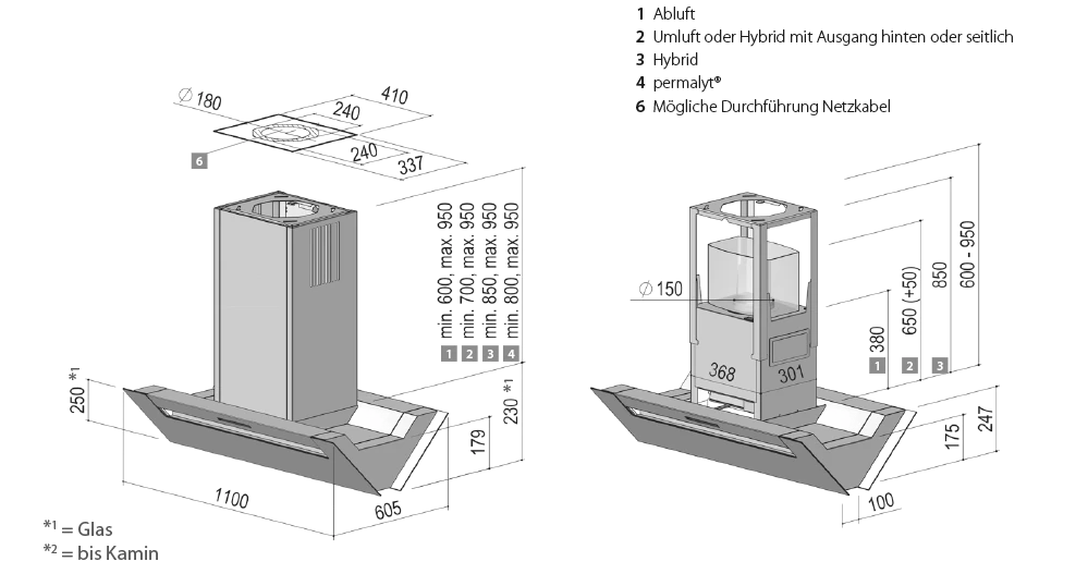 - Individuelle Schachthöhen ohne Aufpreis in 50 mm Schritten von 600 mm bis 950 mm