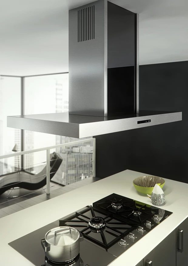 BIH 120 BL ist eine klassische Edelstahl Inselhaube mit 120 cm Breite aus der Serie berbel Blockline. Die Dunstabzugshaube mit bekanntem berbel Prinzip saugt Kochdünste mithilfe von Zentrifugalkraft ein und reinigt die Luft von Fett- und Ölpartikeln. Wahlweise lässt sich die berbel Abzugshaube mit Abluft, Umluft oder einem Hybrid-Abzug kombinieren. Dank EcoSwitch lässt sich ganz einfach zwischen Umluft- und Abluftbetrieb wechseln. Die Insel-Dunsthaube berbel Blockline gibt es mit einem wählbaren Schachtdekor in Edelstahl, Schwarz, Weiß & Sonderfarbe sowie in den Breiten 90 und 120 cm.