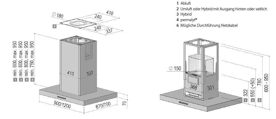 - Individuelle Schachthöhen ohne Aufpreis in 50 mm Schritten von 600 mm bis 950 mm