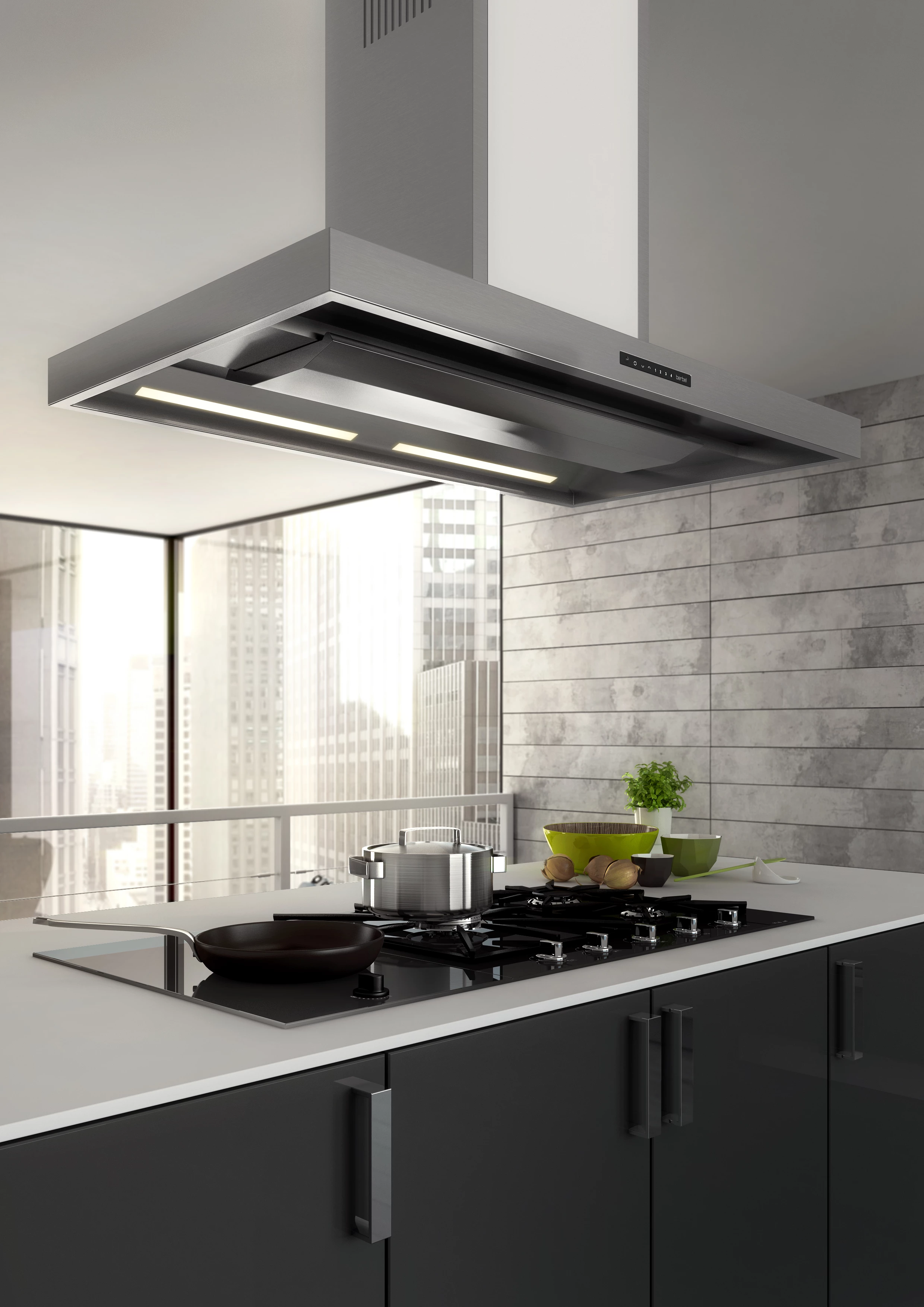berbel BIH 90 BL Blockline Inselhaube 90 cm in Edelstahl, Weiß, Schwarz