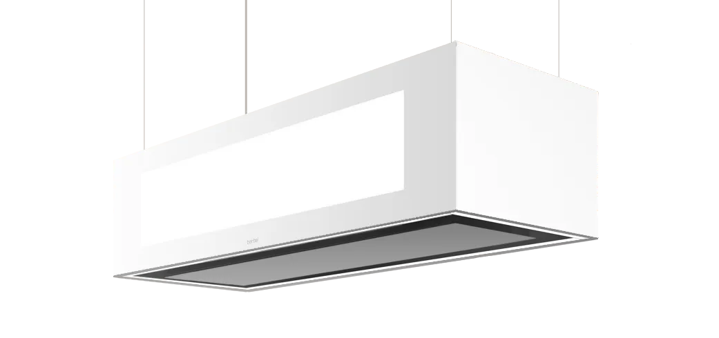 BIH 95 SKE-L ist eine elegante Design-Deckenlifthaube (teil- oder vollversenkbar in der Decke) mit 95 cm Breite in individuell wählbarer Sonderfarbe aus der Serie berbel Skyline Edge Light. Sie ist Küchenbeleuchtung und Dunstabzug in einem. Die Umluft Dunstabzugshaube mit bekanntem berbel Prinzip saugt Kochdünste mithilfe von Zentrifugalkraft ein und reinigt die Luft von Fett- und Ölpartikeln. Die Inselhaube berbel Skyline Edge Light gibt es in den Glasdekoren Schwarz, Weiß, Silbermetallic & einer indiviudell wählbaren Sonderfarbe sowie in den Breiten 95 und 115 cm.