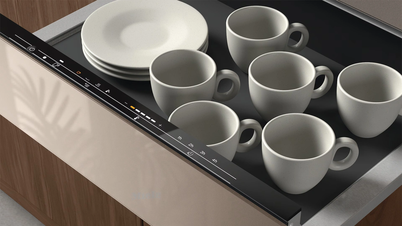 Keep food and plates pleasantly warm with the Miele ESW 7010 warming drawer in pearl beige – perfect for relaxed serving and cozy meals. With its elegant color, it blends stylishly into any kitchen and impresses with its ease of use and high-quality workmanship.