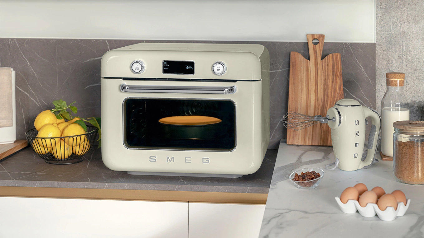 Small, but packed with power! The Smeg Mini Oven in Cream is a compact tabletop steam oven in the iconic 1950s retro style, which, with its rounded lines and chrome-plated controls, is a perfect addition to any kitchen, even in small spaces.