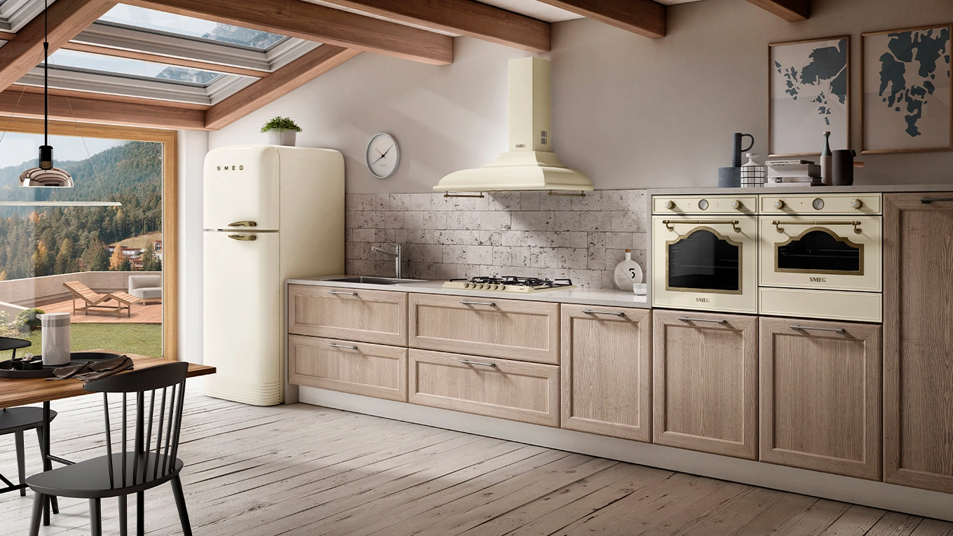 - Beige + Pastel Shades: Light, friendly color accents, perfect in combination with retro appliances from Smeg.