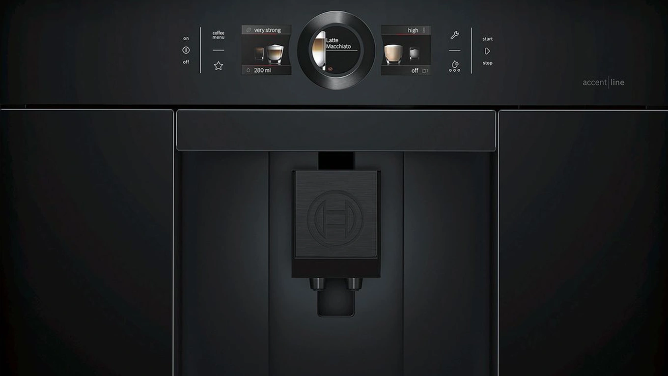 Design-wise, the built-in fully automatic coffee machine is inspired by the Bosch accent line oven. It completes the kitchen and offers the perfect hot beverage for every occasion.