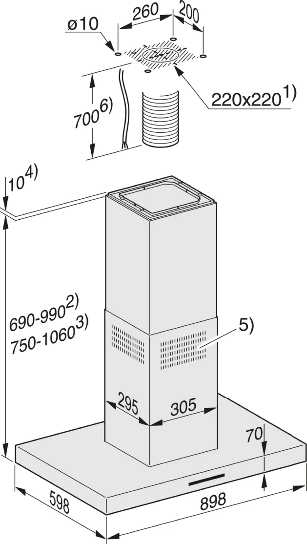 - Zeitloses Design – Edelstahl-Haubenschirm in 898 mm Breite