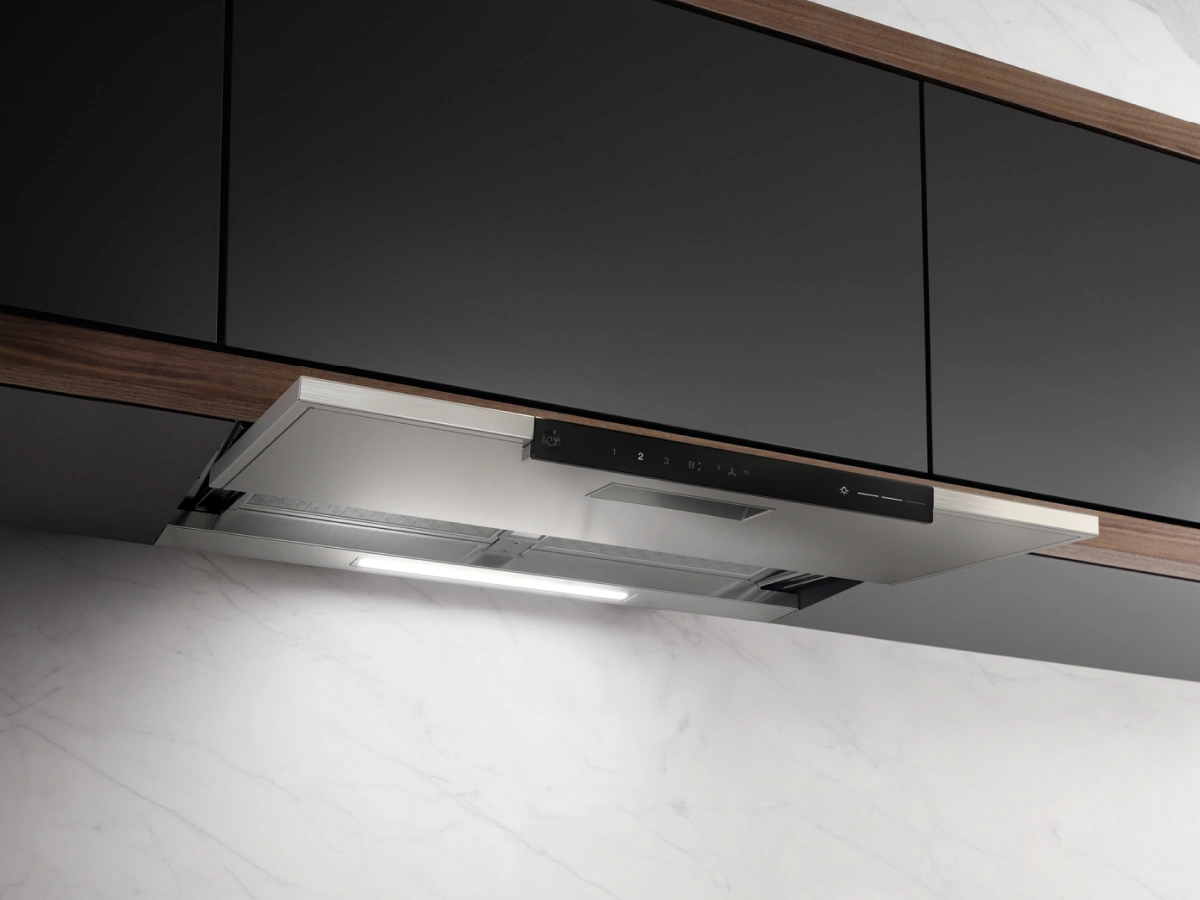 Miele DAS 8630 ist eine Flachpaneel-Dunstabzugshaube für schmale Oberschränke mit flachem Edelstahl-Paneel. Die Einbauhaube ist eine klassische Abzugshauben-Lösung in 600 mm Breite. Sie ist für den Abluft- und Umluft-Betrieb geeignet und besitzt ua. einen 10-lagigen Edelstahl-Metallfilter sowie den Active AirClean-Aktivkohlefilter (nachkaufbar) für eine effiziente Filterung von Kochdünsten und -gerüchen. Mithilfe von Con@ctivity lässt sich die Haube smart steuern und mit dem Kochfeld verbinden.
