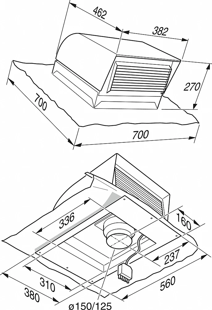 - Anschluss des Gebläses an die Haube über Kupplungsstecker