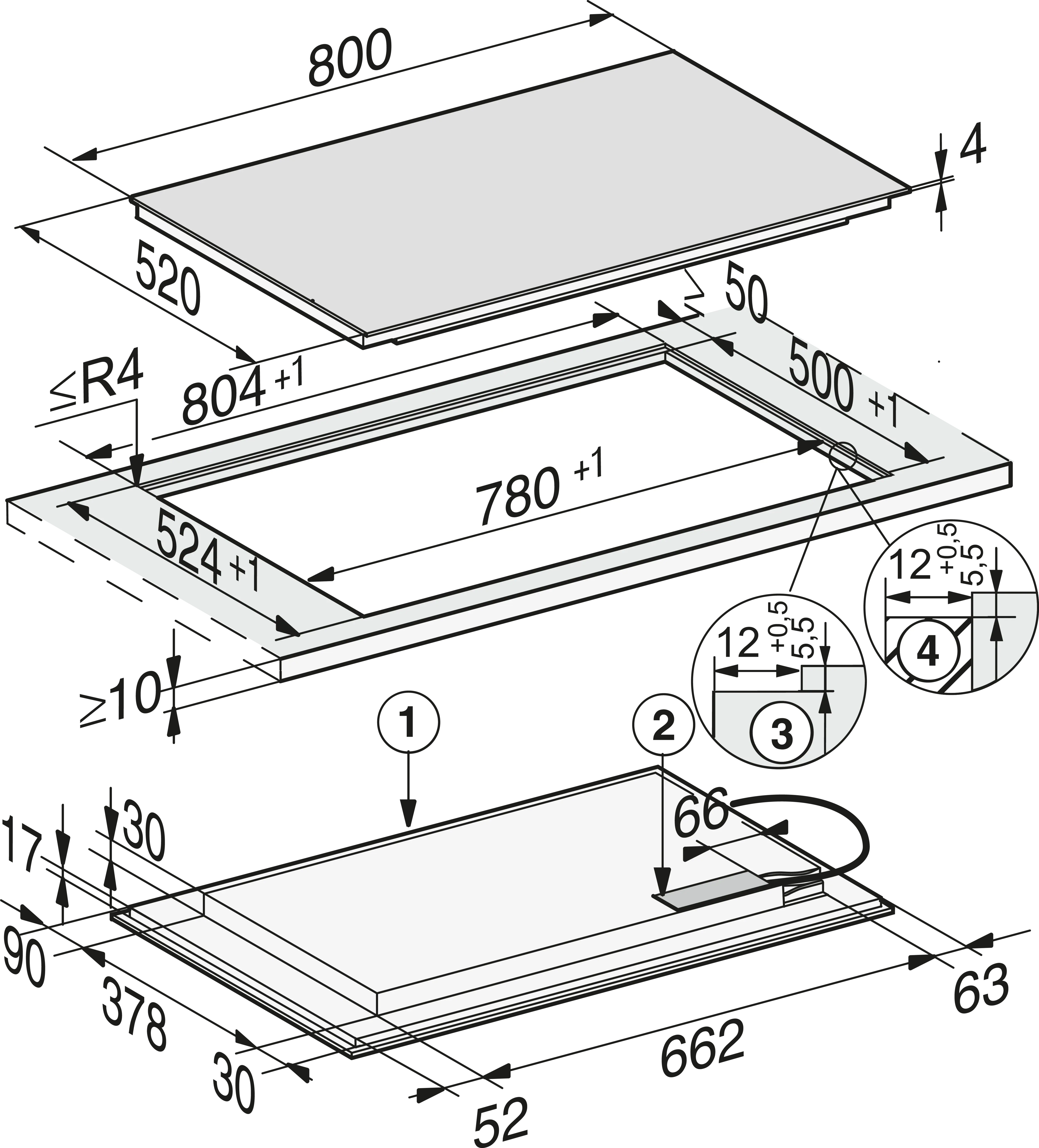 - In 800 mm Breite für flächenbündigen oder aufliegenden Einbau