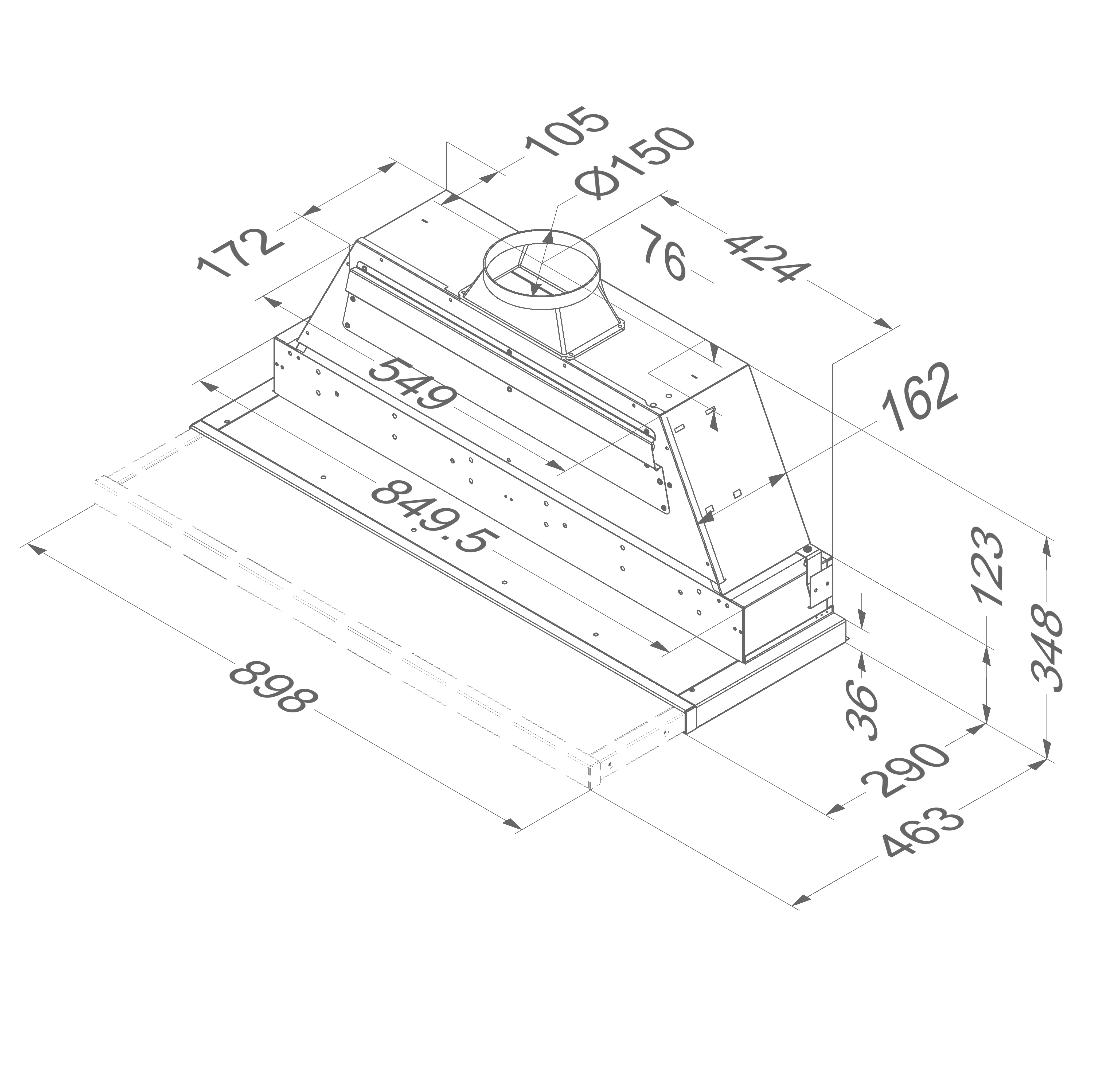 Novy 692 Flachschirmhaube in 90 cm Edelstahl
