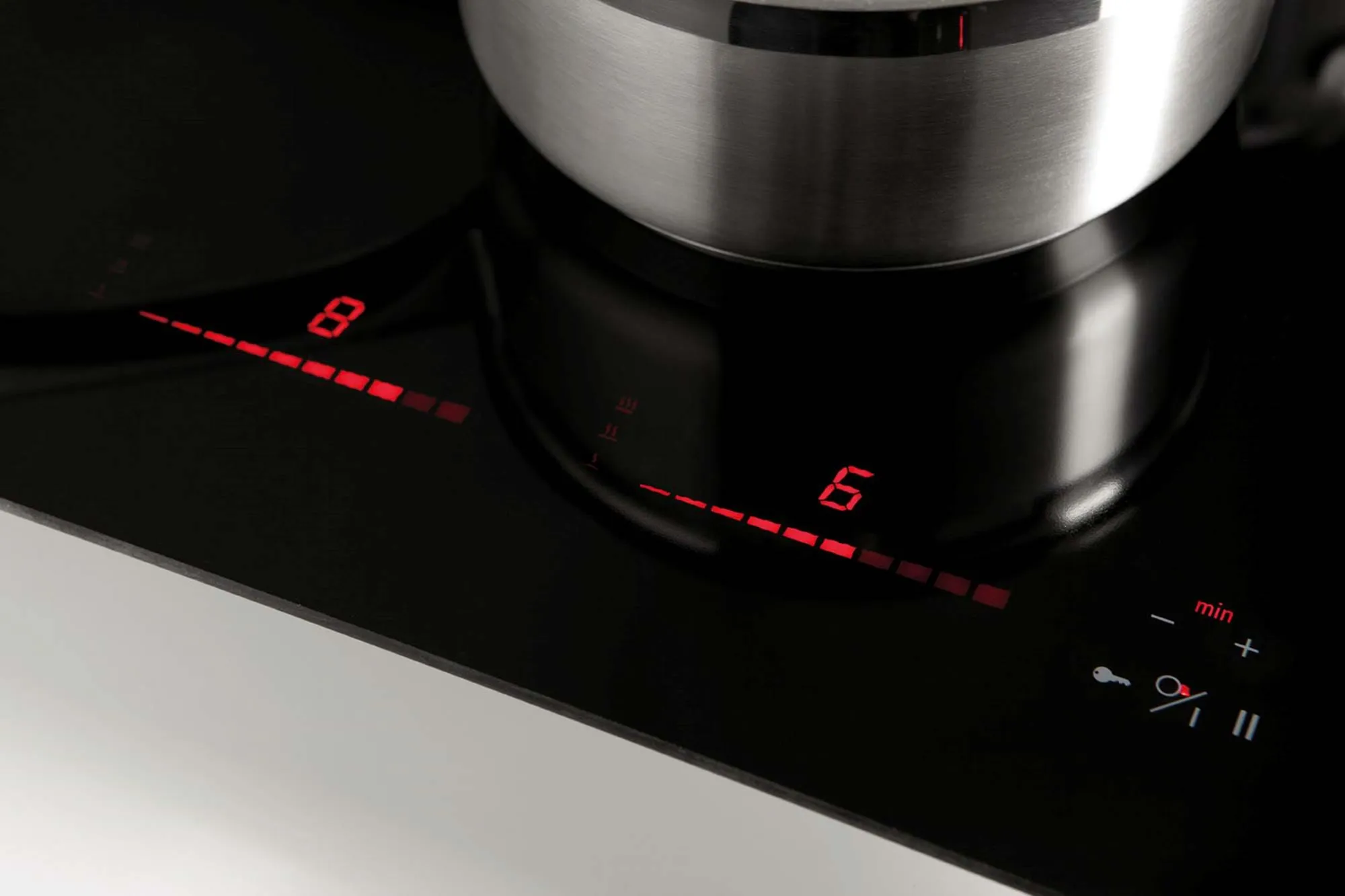 Novy Pro 3762 ist ein Domino Induktionskochfeld in 38 cm für zwei Kochzonen. Es hat eine Flex-Zone und wird über Touch mit roter Anzeige bedient.