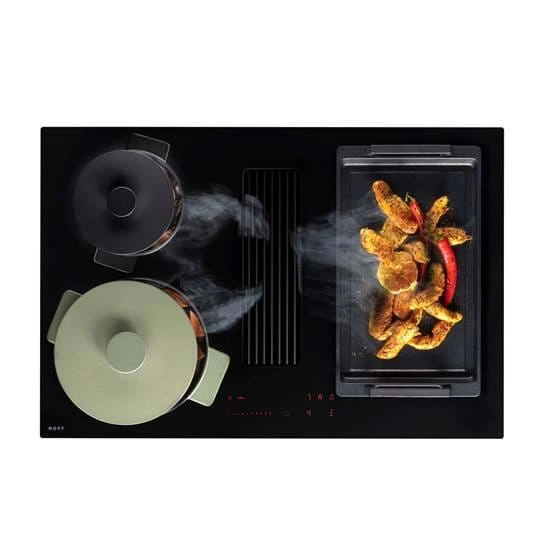 Kochfeld und Dunstabzug in einem - das Novy Easy Pro 1851 ist die perfekte All-in-One Lösung. Die im Kochfeld intergrierte Muldenlüftung saugt Kochdünste direkt an der Quelle ihrer Entstehung ab und führt die Luft über Abluft nach Draußen ab. Das Novy Induktionskochfeld mit 80 cm bietet vier Kochzonen und lässt sich aufliegend oder flächenbündig in die Arbeitsplatte einbauen.