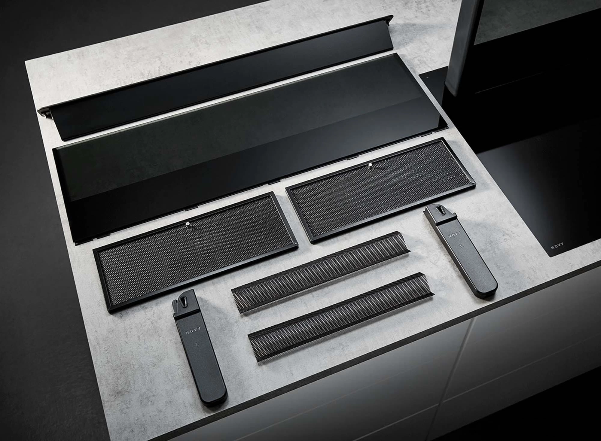 Kochfeld und Dunstabzug in einem - das Novy Panorama Power 1841 ist die perfekte All-in-One Lösung. Die Muldenlüftung (ein semi transparenter Lüftungsschirm am hinteren Kochfeldbereich) saugt Kochdünste direkt an der Quelle ihrer Entstehung ab und lässt sich dazu noch in der Höhe einstellen. Nach dem Kochen verschwindet sie wieder unsichtbar im 88 cm breitem Kochfeld. Das Novy Panorama Power Induktionskochfeld bietet vier Kochzonen und lässt sich aufliegend oder flächenbündig in die Arbeitsplatte einbauen.