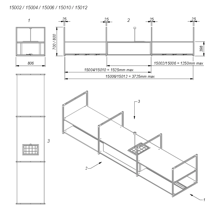 - Ausführung mit 3 Rahmen von 80 cm Höhe
