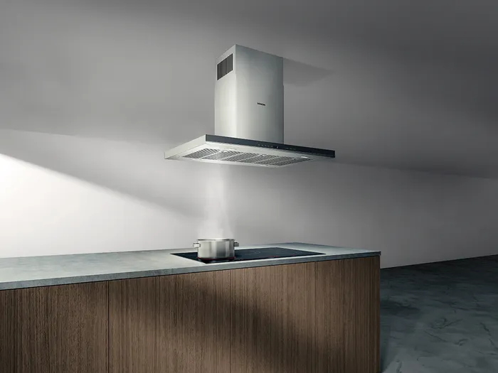 Stand out from the standard and the wall. The range hoods from Siemens studioLine impress with their unique design and remarkable performance. The control panel and the high-quality metal grease filter in blackSteel excite every time they are turned on. Thanks to intelligent technology, they can be tailored to your personal needs—creating an innovative and personalized kitchen.