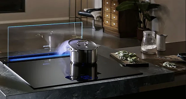 The studioLine downdraft extractors eliminate steam and odors directly at the source: at the cooktop. This allows you to enjoy even more freedom and space while cooking, along with a generous design for a modern kitchen aesthetic.