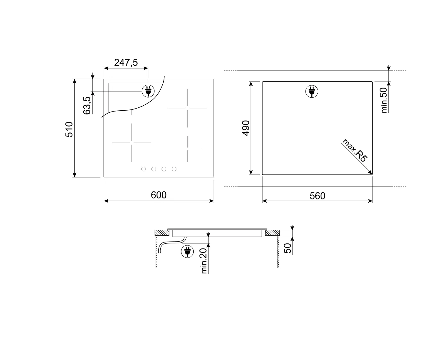 Smeg SE364ETBM ist ein Glaskeramikkochfeld in Schwarz mit Facettenschliff-Rahmen aus der Serie Classici. Das Kochfeld besitzt vier Kochzonen auf 60 cm Breite und eine sensorgesteuerte Drehknebelbedienung.