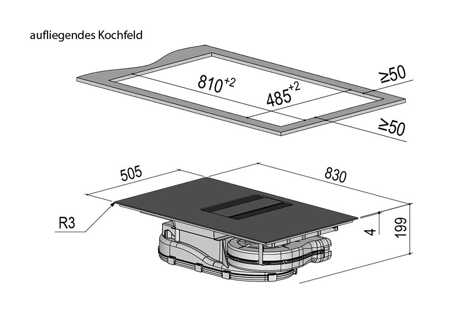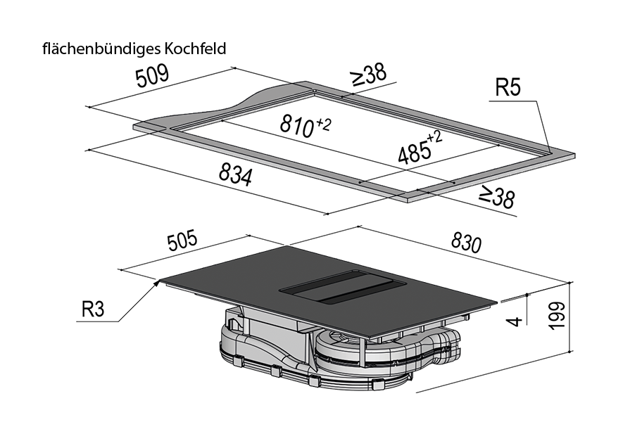 - Zentrale Bedienung von Kochfeld und Absaugung