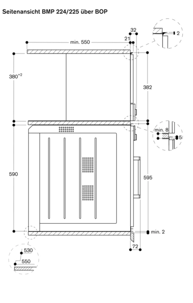 - Seitlich öffnende Tür mit 110° Öffnungswinkel.