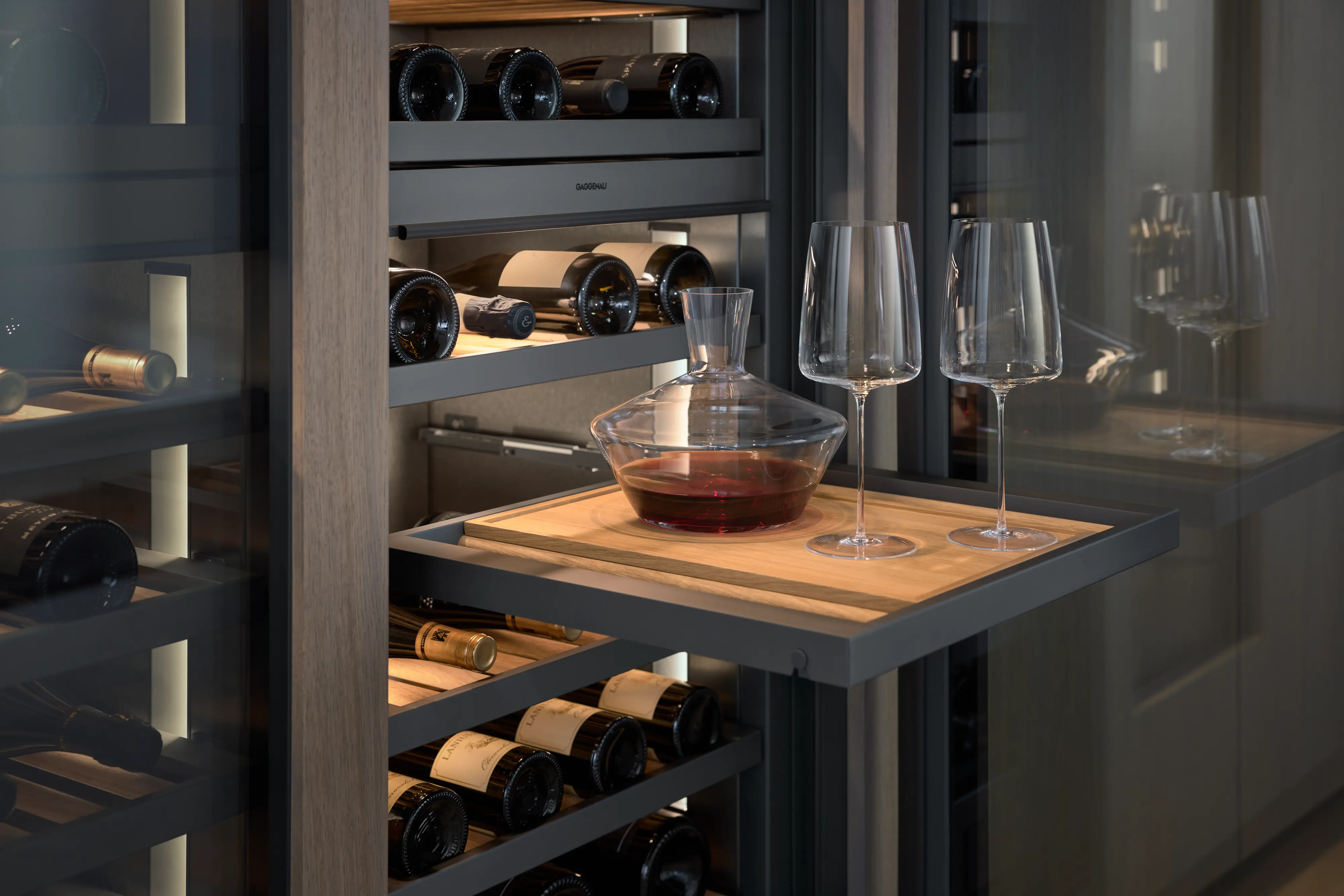 - Optimale Weinlagerung durch präzise Klimazonenregelung, sanft schließende Ablagen und ausgeklügelten UV-Schutz