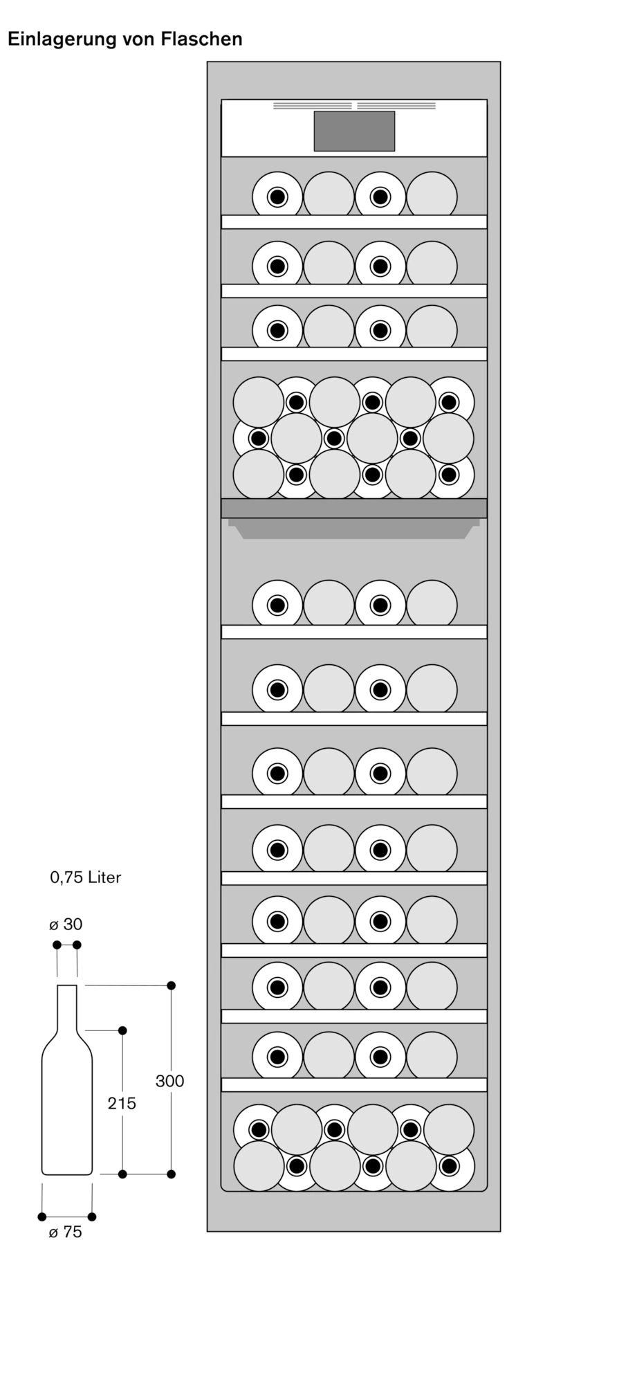Der Gaggenau RW414305 Vario Weinklimaschrank ist der ideale Weinkühlschrank für die Weinflaschen Lagerung. Auf 45 x 212 cm und zwei getrennt steuerbaren Klimazonen bietet er Platz für 70 Flaschen á 0,75 Liter. Die Temperatur im Innenraum lässt sich gradgenau auf 5 bis 20° Celsius einstellen.