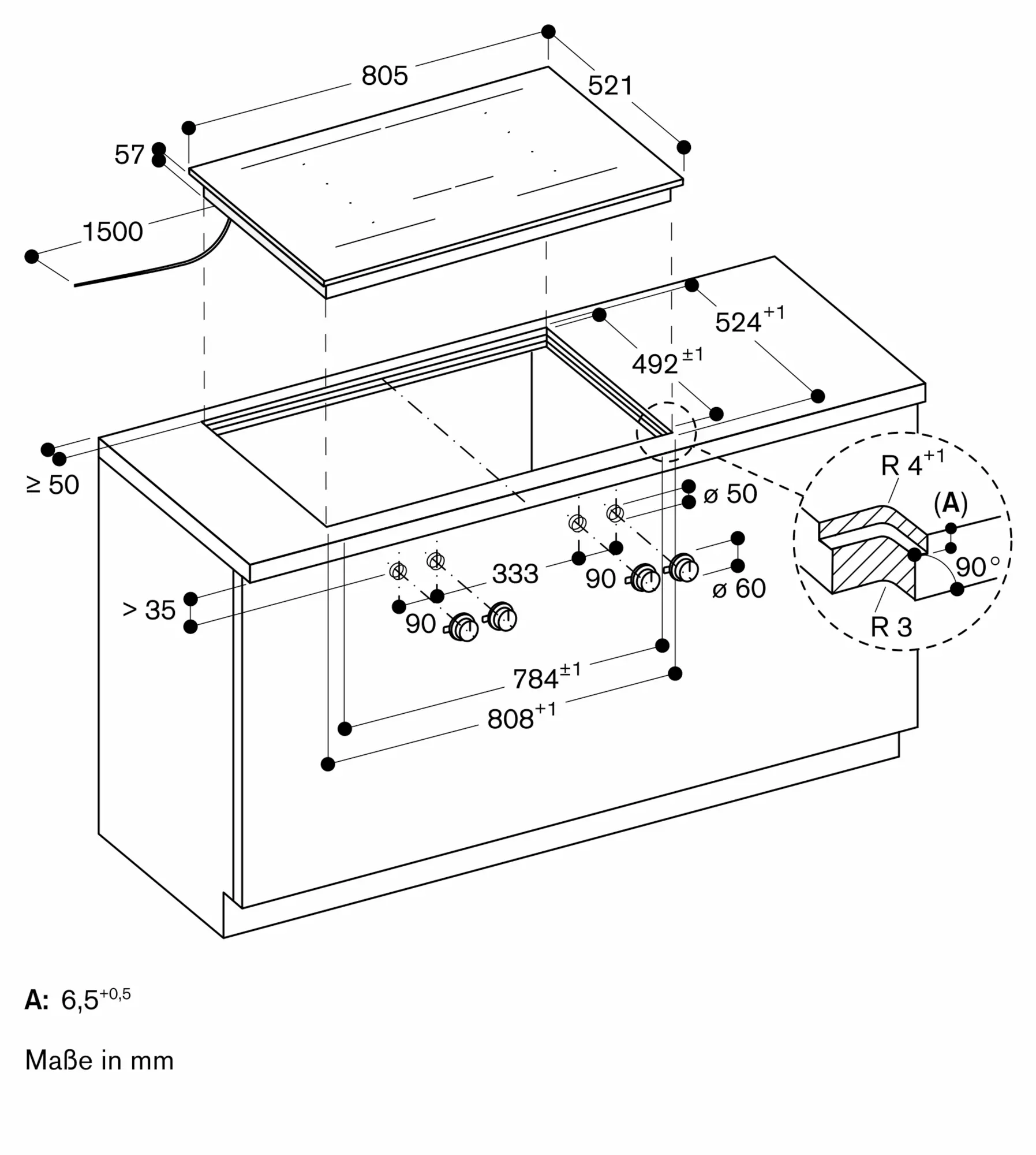 - Freies Platzieren des Kochgeschirrs innerhalb der zusammengeschalteten Kochflächen