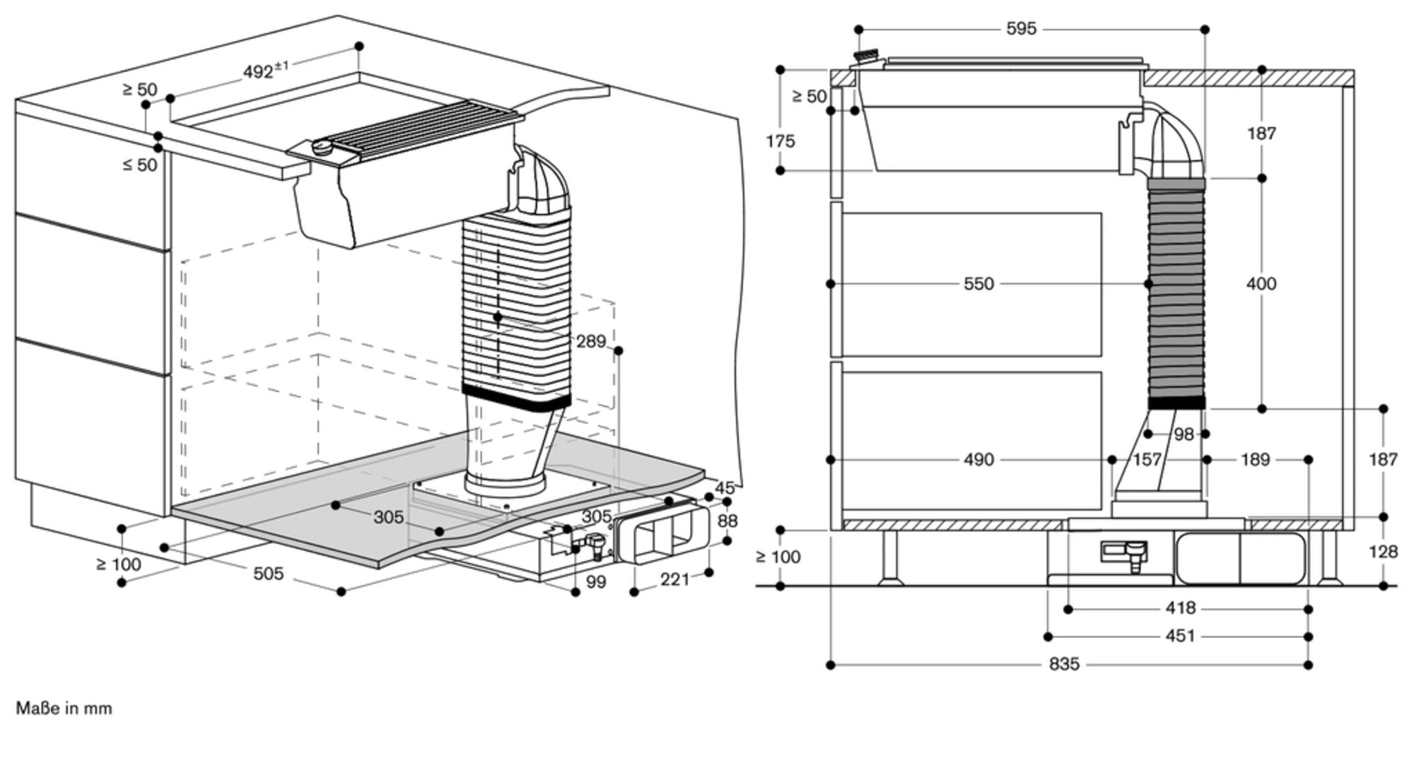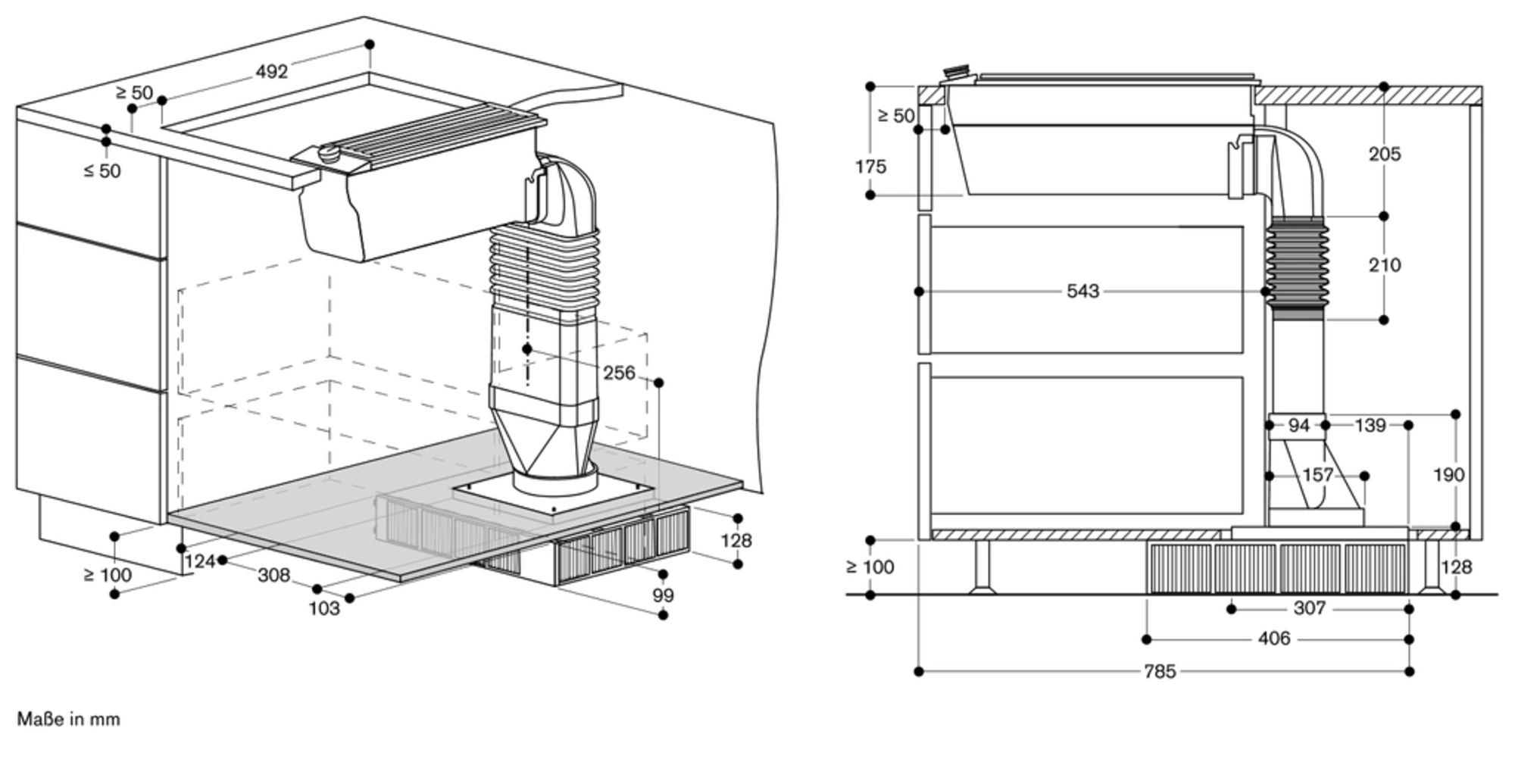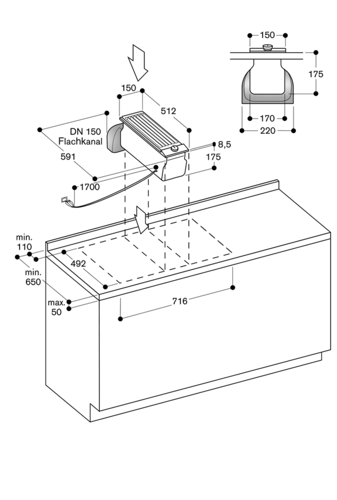 - Hocheffiziente Lüftungslösung direkt am Kochfeld integriert in die Arbeitsplatte