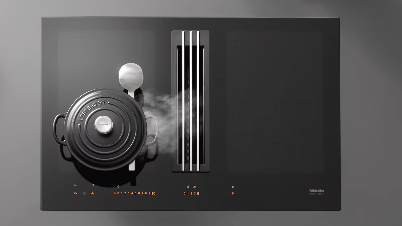 In altbekannter Optik, jedoch mit einigen Neuerungen erscheint das neueste Induktionskochfeld mit integriertem Dunstabzug von Miele. Mit dem KMDA 7476 lässt sich unter anderem mit XL-Töpfen und -Pfannen garen. Das sind die zwei Neuerungen: