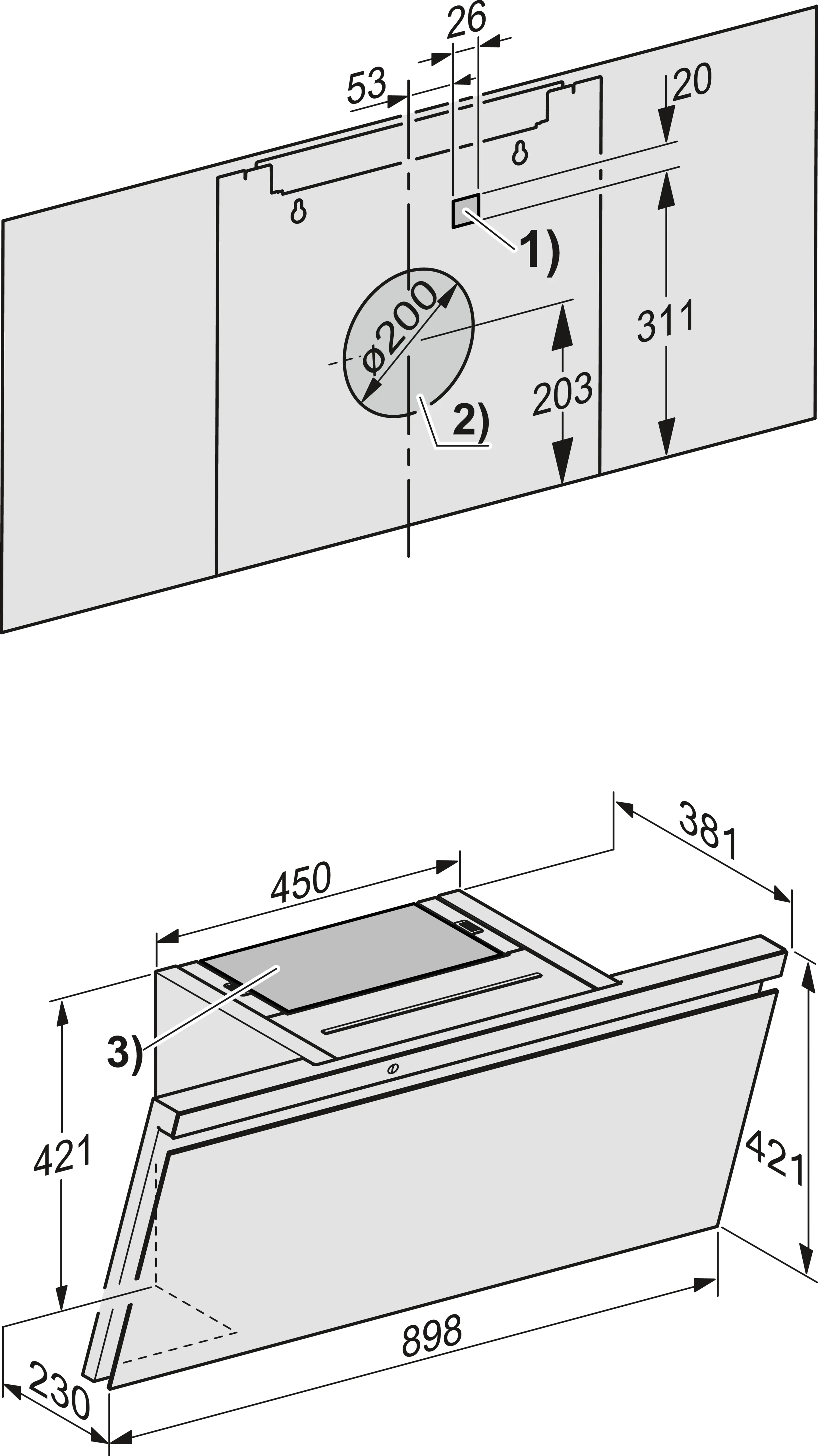 - Kopffreiheit - mit Front-Paneel in 898 mm Breite
