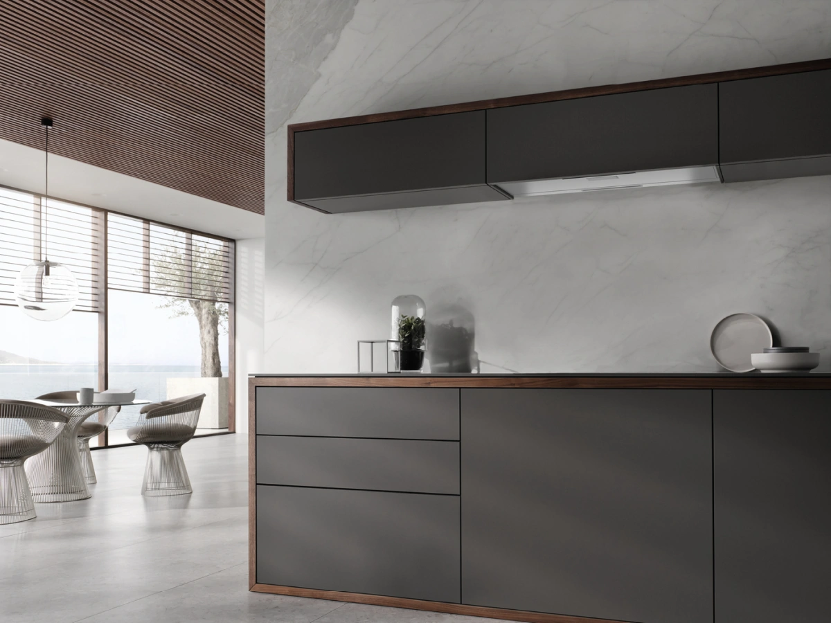 Miele DAS 8930 ist eine Flachpaneel-Dunstabzugshaube für schmale Oberschränke mit flachem Edelstahl-Paneel. Die Einbauhaube ist eine klassische Abzugshauben-Lösung in 900 mm Breite. Sie ist für den Abluft- und Umluft-Betrieb geeignet und besitzt ua. einen 10-lagigen Edelstahl-Metallfilter sowie den Active AirClean-Aktivkohlefilter (nachkaufbar) für eine effiziente Filterung von Kochdünsten und -gerüchen. Mithilfe von Con@ctivity lässt sich die Haube smart steuern und mit dem Kochfeld verbinden.
