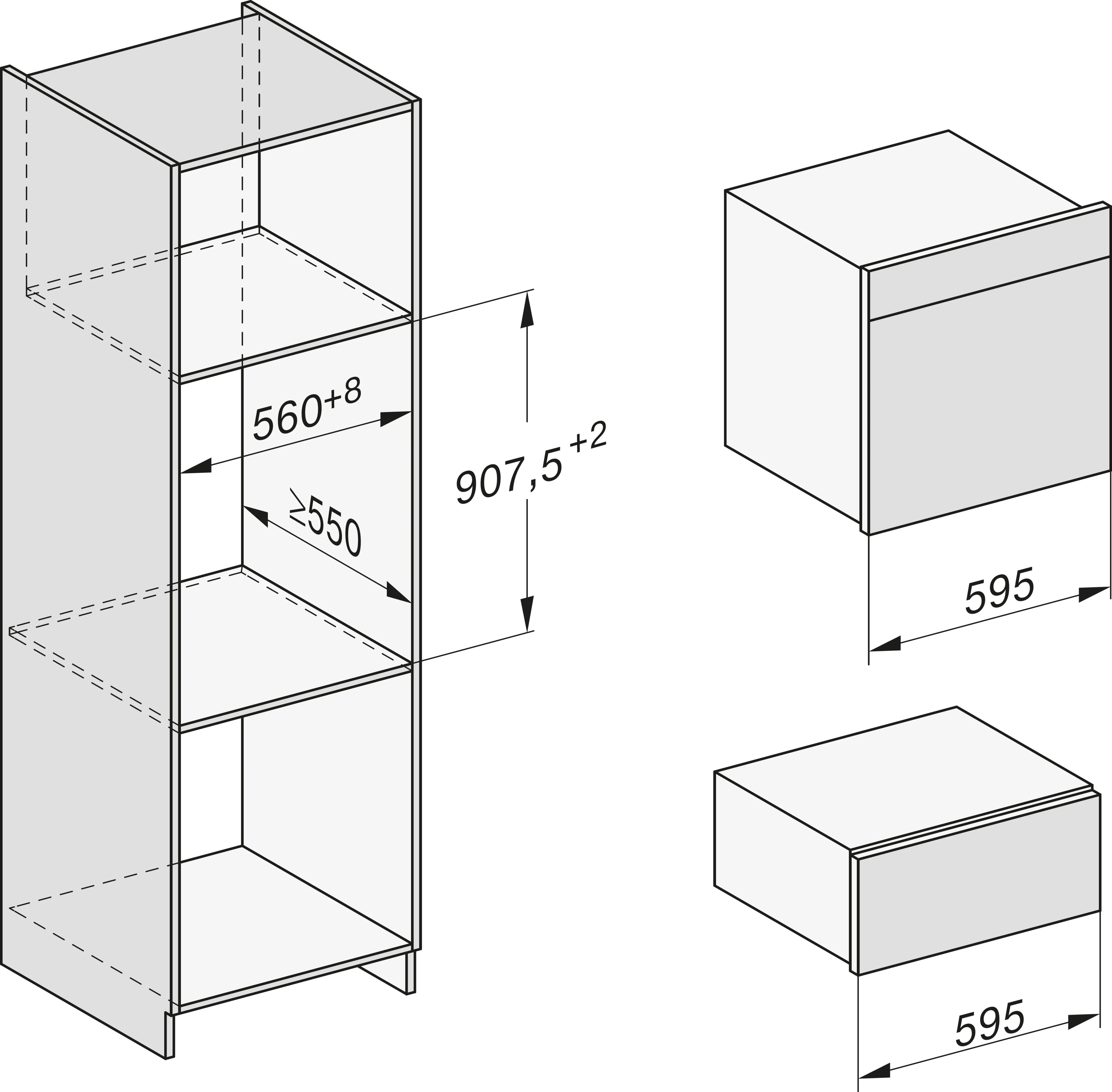 - in 32cm Höhe für die 90cm hohe Nische