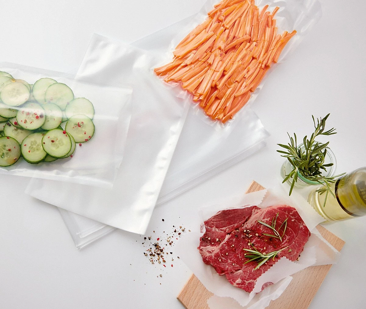Miele VB 1828 ist ein 50er Set kleine Vakuumierbeutel für flüssige und feste Lebensmittel zum Einmalgebrauch. Die Vakuumbeutel sind glatt, reißfest und ideal für Sous-Vide-Garen sowie für den Einsatz in der Vakuumierschublade geeignet.