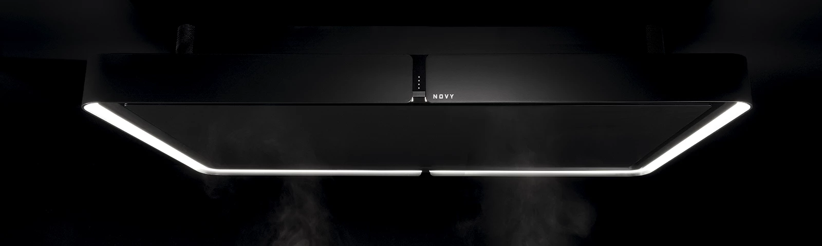Das System der Randabsaugung wurde von Novy patentiert. Aufsteigende Kochdünste von der gesamten Fläche des Kochfeldes werden erfasst und hauptsächlich am Rand abgesaugt. Novy wendet diese Technik bei allen Hauben an, denn so geht vor allem im Abluftbetrieb keine wertvolle Energie verloren. Auch im Umluftbetrieb sorgen sie für eine bessere Lufterfassung.