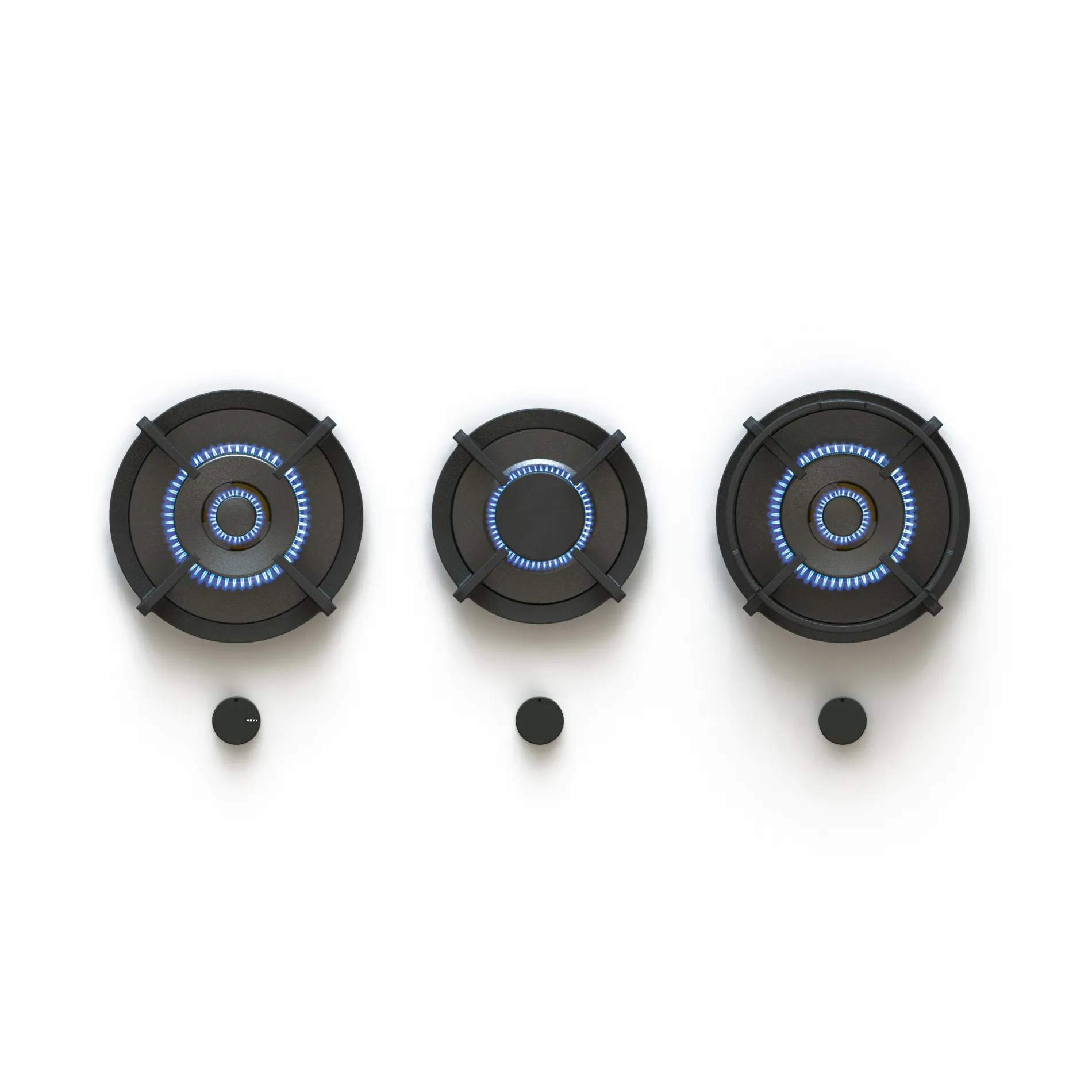 - Genügend Platz zwischen den Brennern für große Töpfe und Pfannen