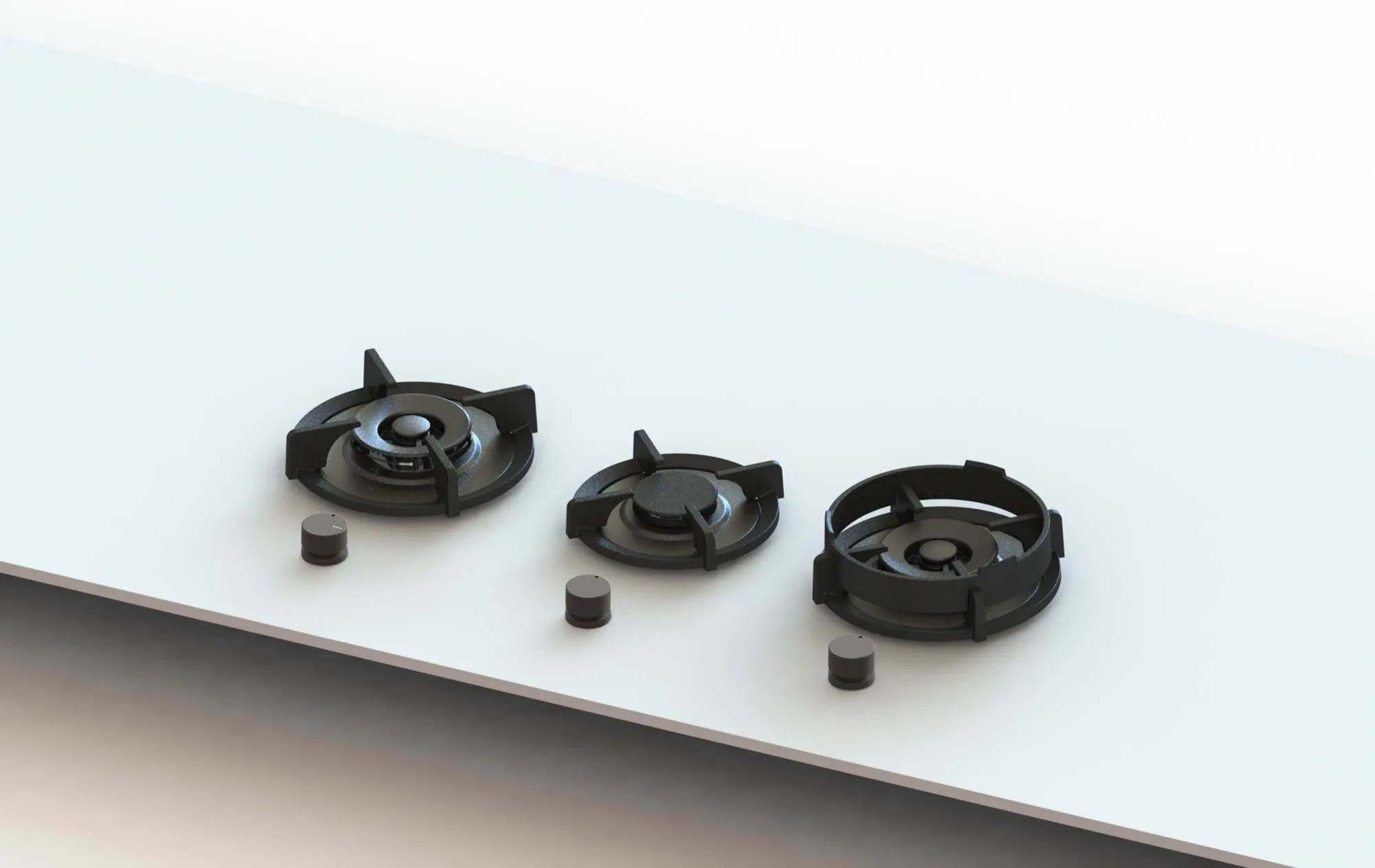 - Gasbrenner direkt in der Arbeitsplatte integriert
