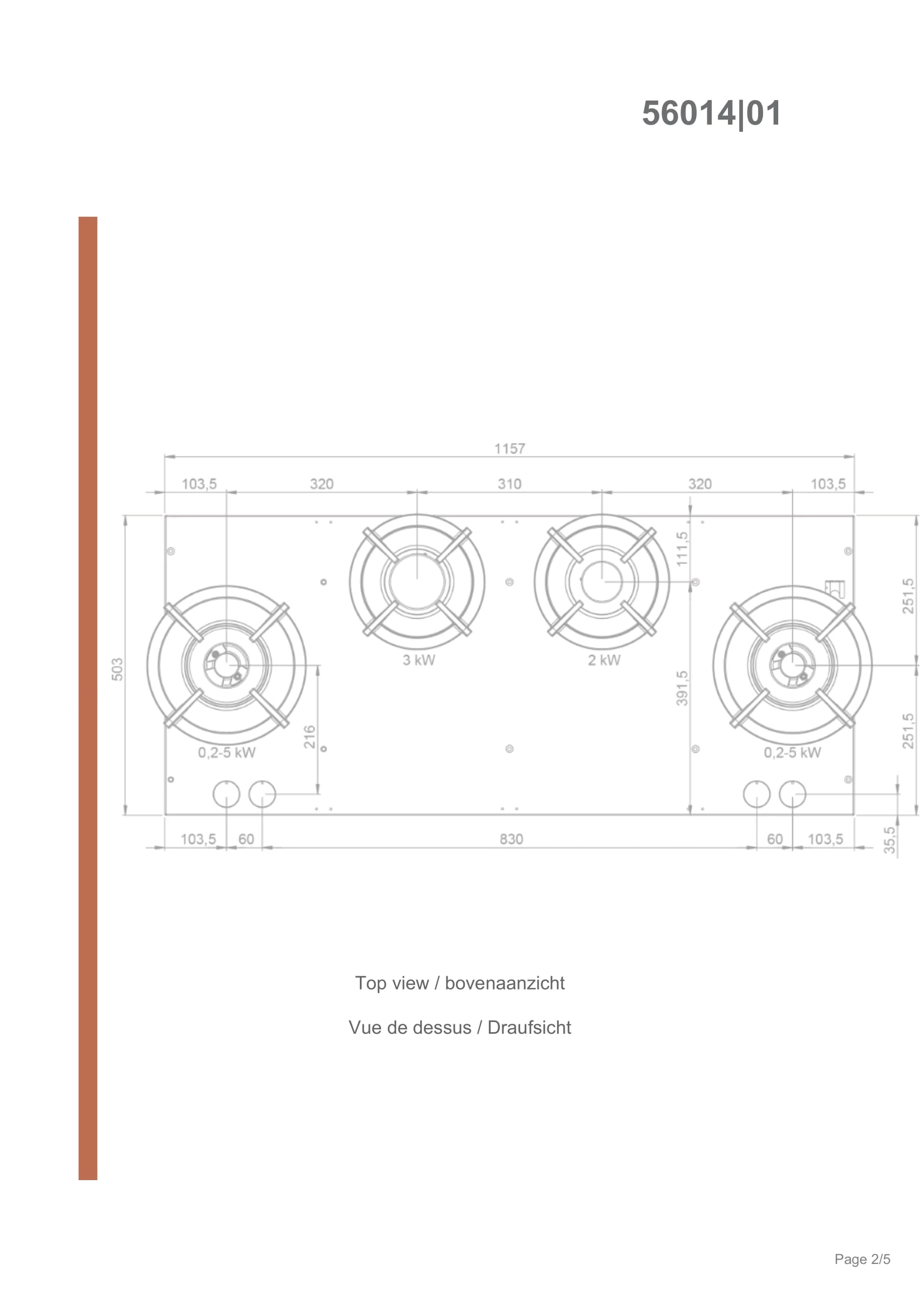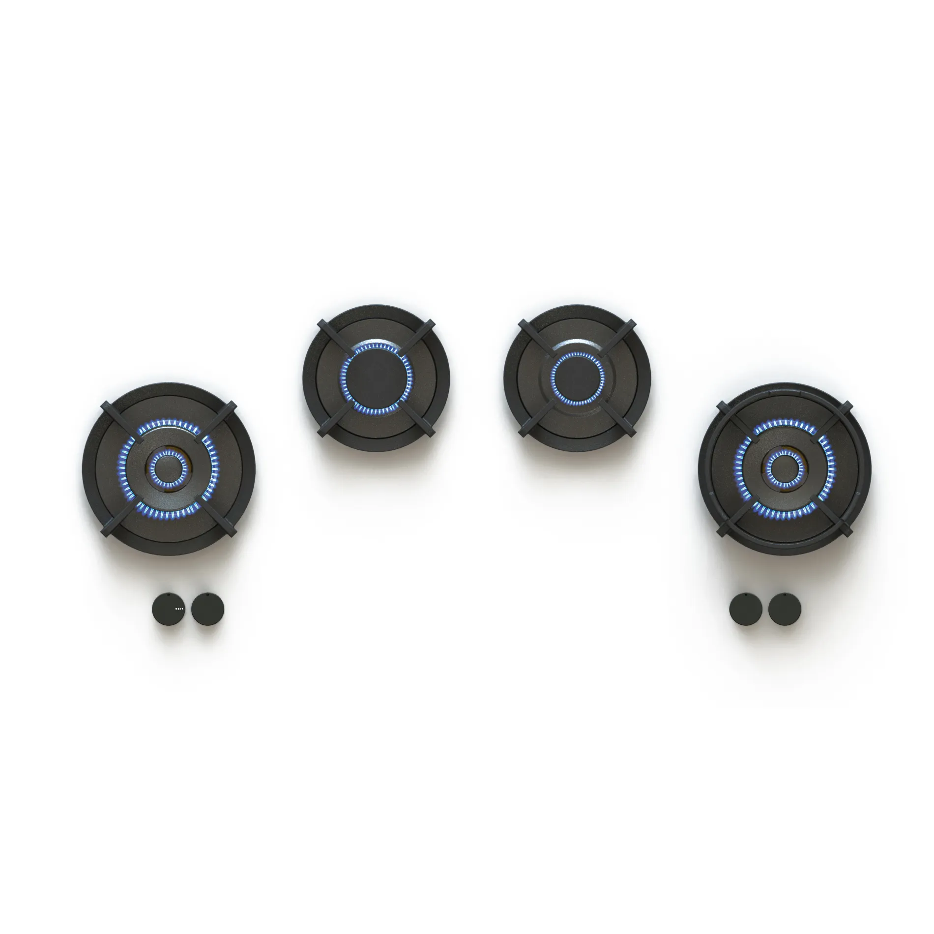 Kein klassisches Gaskochfeld, sondern sehr individuell - bei Novy werden die Gasbrenner direkt in die Arbeitsplatte integriert, was ganz individuelle Einbau-Möglichkeiten bietet. Aus verschiedenen Setups lässt sich das Gaskochfeld aus 1 bis 6 Feldern konfigurieren. Das Set Novy Drum Top 56014 inkludiert vier gusseiserne Gasbrenner mit verschiedenen Brennerleistungen (3000, 2000 und 200-5000 W) und passenden Bedienknebeln.