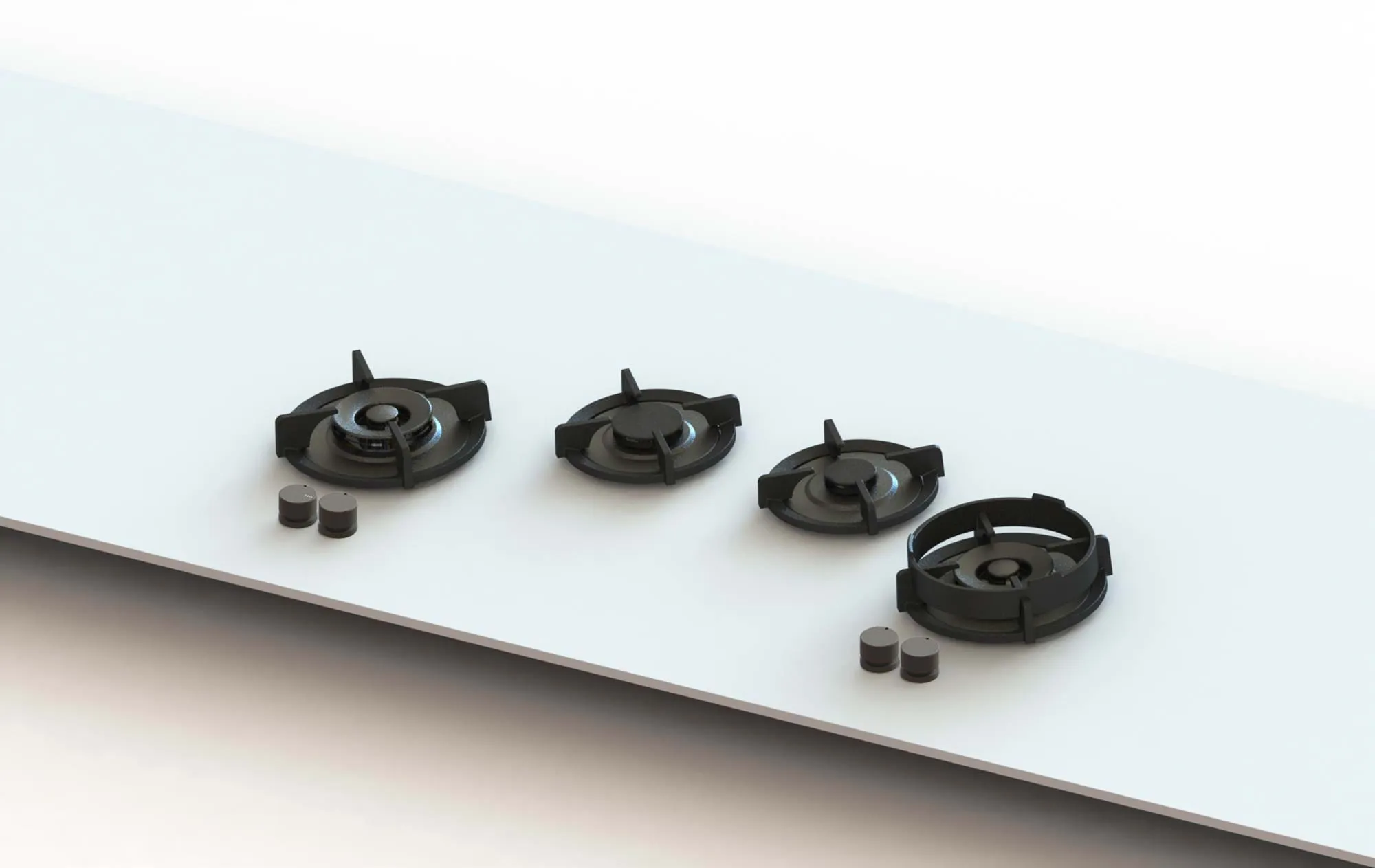 - Genügend Platz zwischen den Brennern für große Töpfe und Pfannen