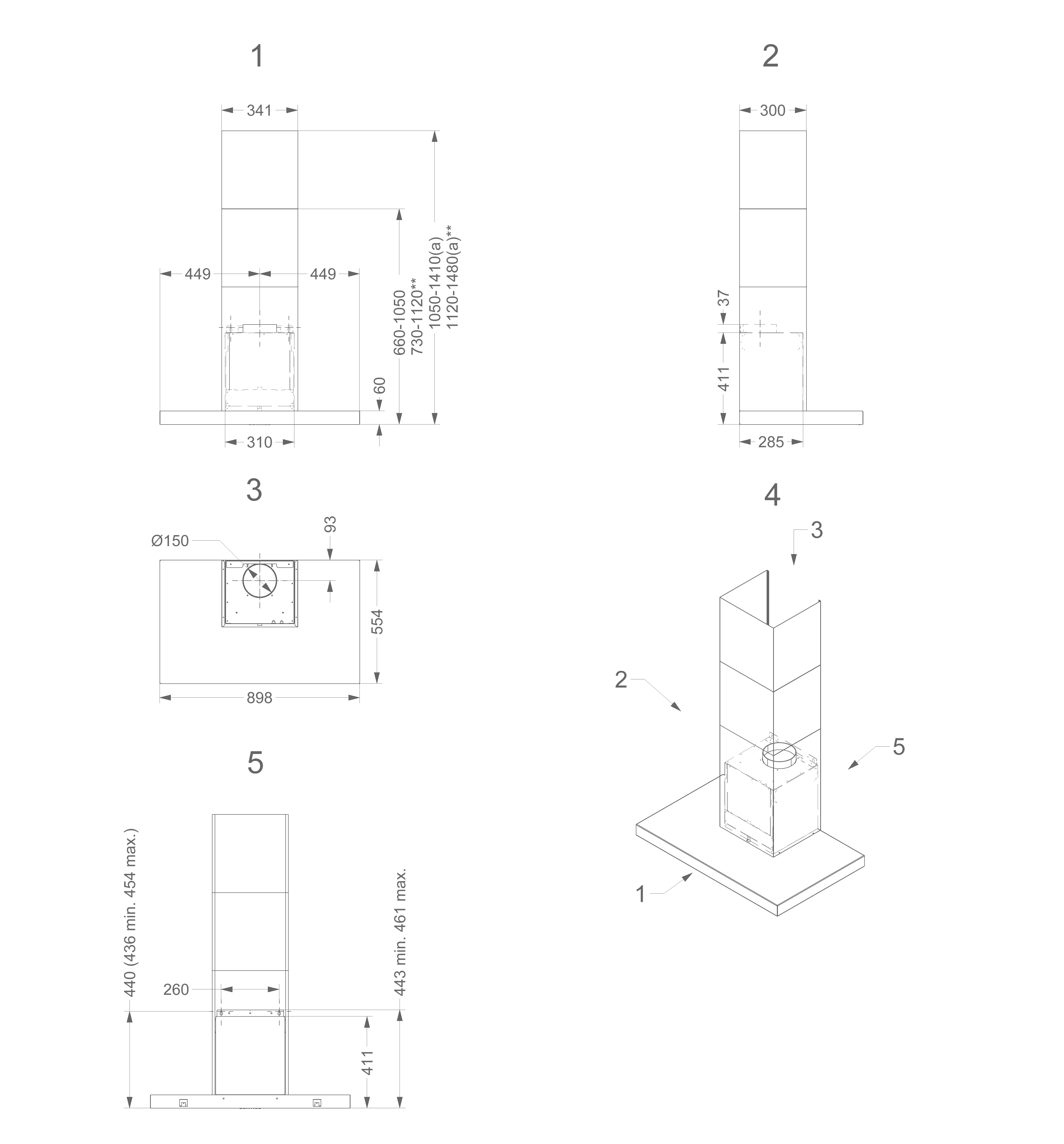 Novy Flatline 7600 Wandhaube in 90 cm Edelstahl