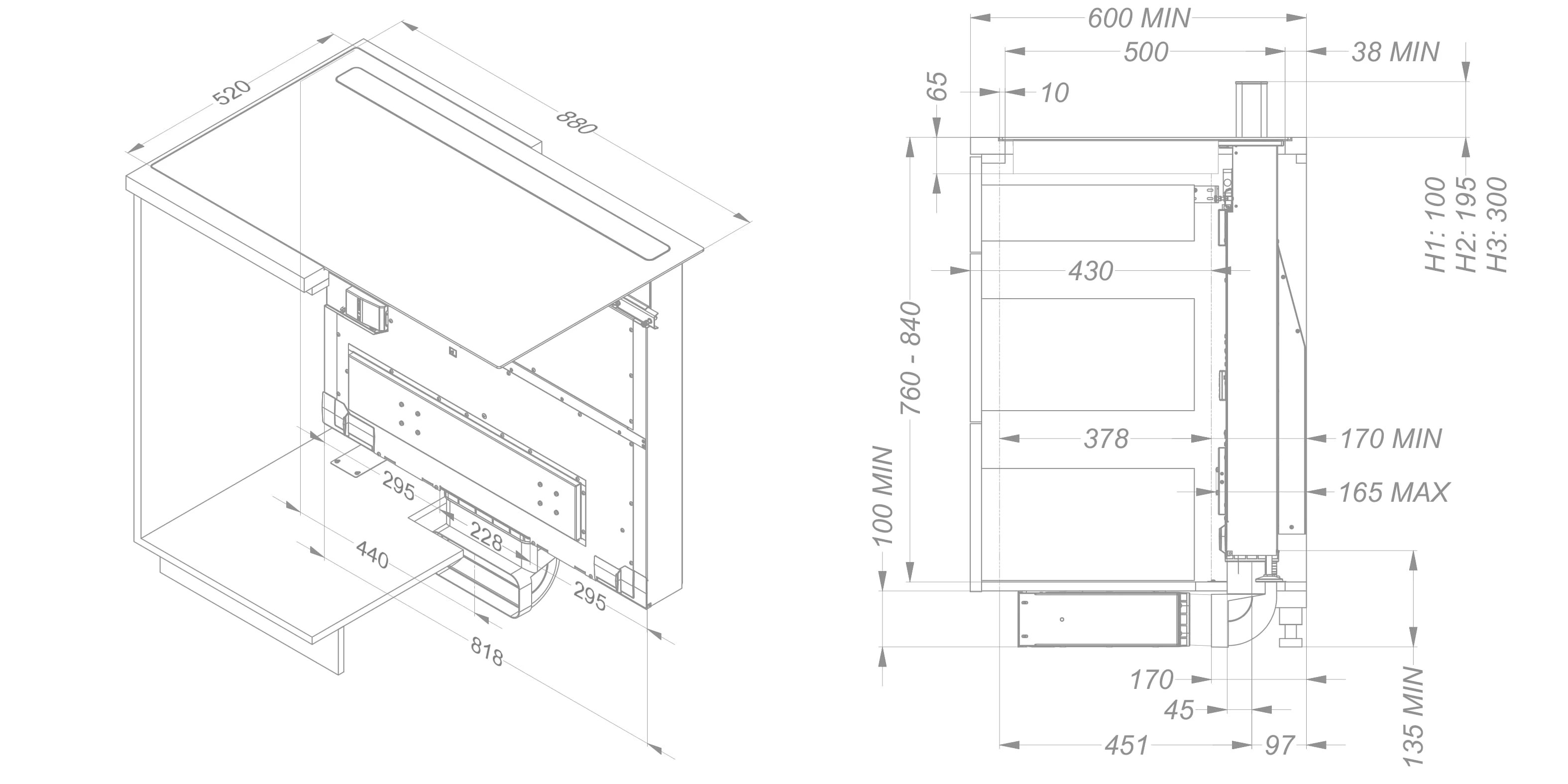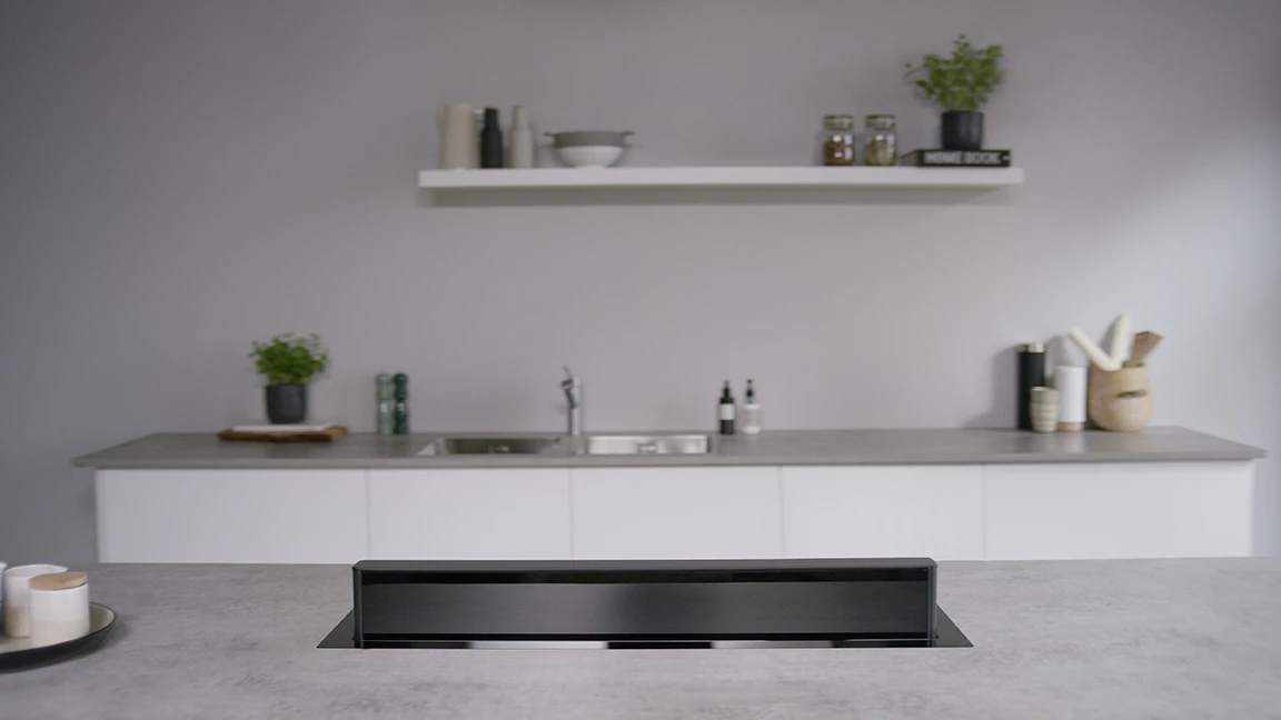 - Semi-transparanter Lüftungsschirm verschwindet unsichtbar im Kochfeld