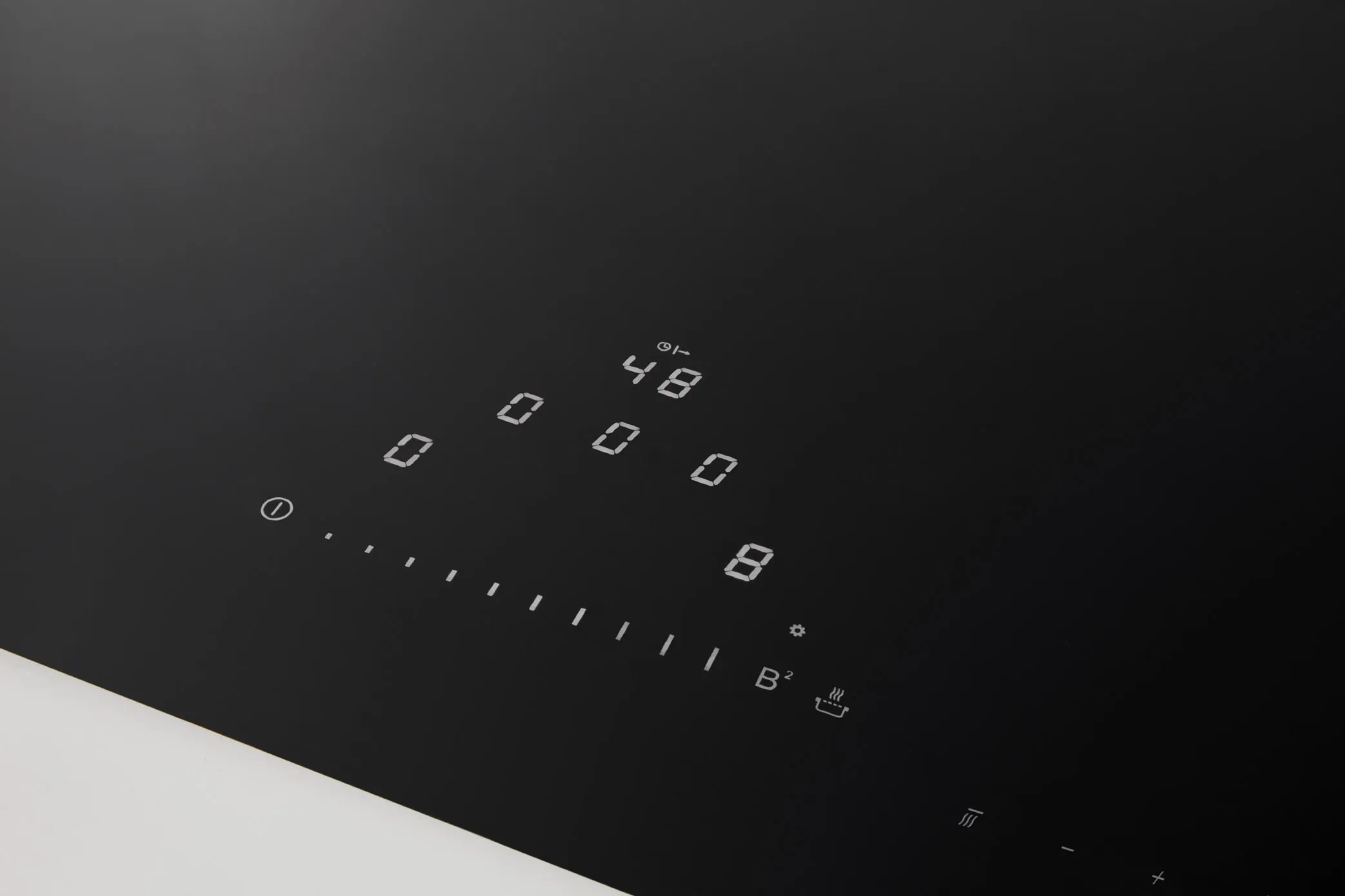 Novy Pro 1777 ist ein 90 cm Induktionskochfeld mit vier achteckigen Kochzonen, inklusive Flex-Induktion. Je zwei Zonen lassen sich zu einer großen Kochfläche zusammenschalten. Die Bedienung erfolgt über Touch Slider mit weißer Anzeige. Mit InTouch lässt sich auch die Dunstabzugshaube über das Kochfeld steuern.