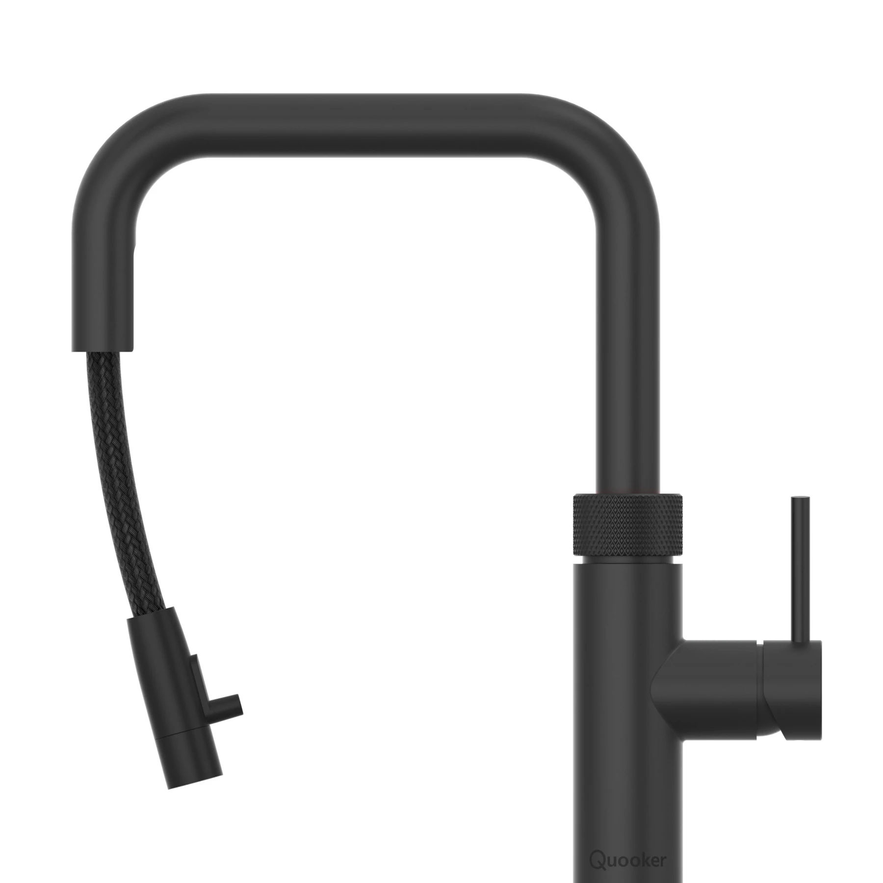 - Quooker bietet: einen höhenverstellbaren Hahn, dessen Auslauf genau über das zu befüllende Behältnis gedreht werden kann, wodurch er nicht spritzt