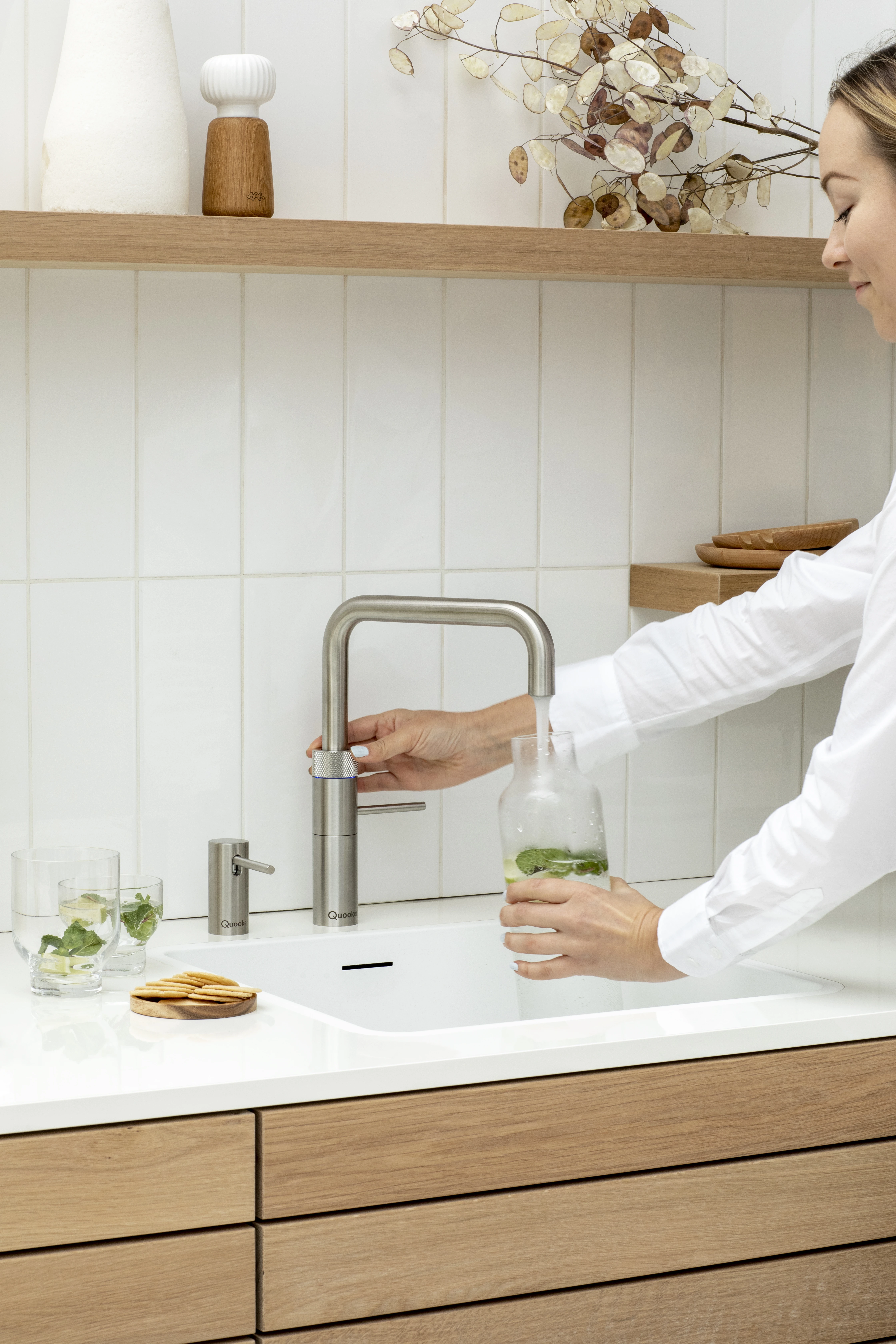 - Quooker zeichnet aus: einen tropfenförmigen, nicht massiven Wasserstrahl, der auf diese Art keine Verbrennungen verursacht