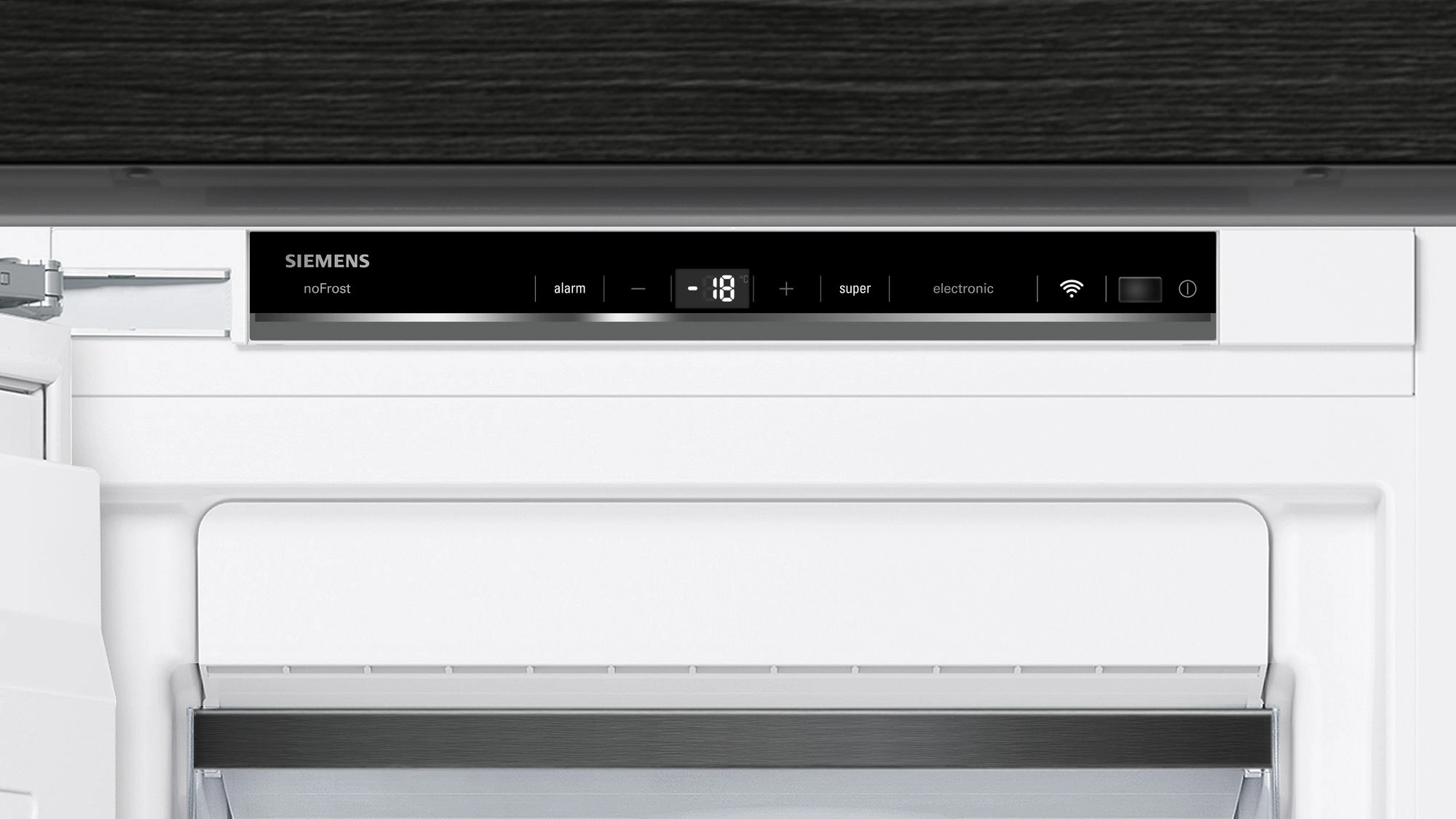 Der Siemens GI81NHCE0 iQ700 Gefrierschrank ist ein smartes Einbaugerät aus der Premium-Serie studioLine. Auf 212 Liter bietet der Einbaugefrierschrank viel Raum zum Gefrieren von Lebensmitteln. Zu seinen Features gehören die Abtau-Automatik NoFrost, die bigBox zur extra großen Lagerfläche von großem Gefriergut und die smarte Steuerung über Home Connect.