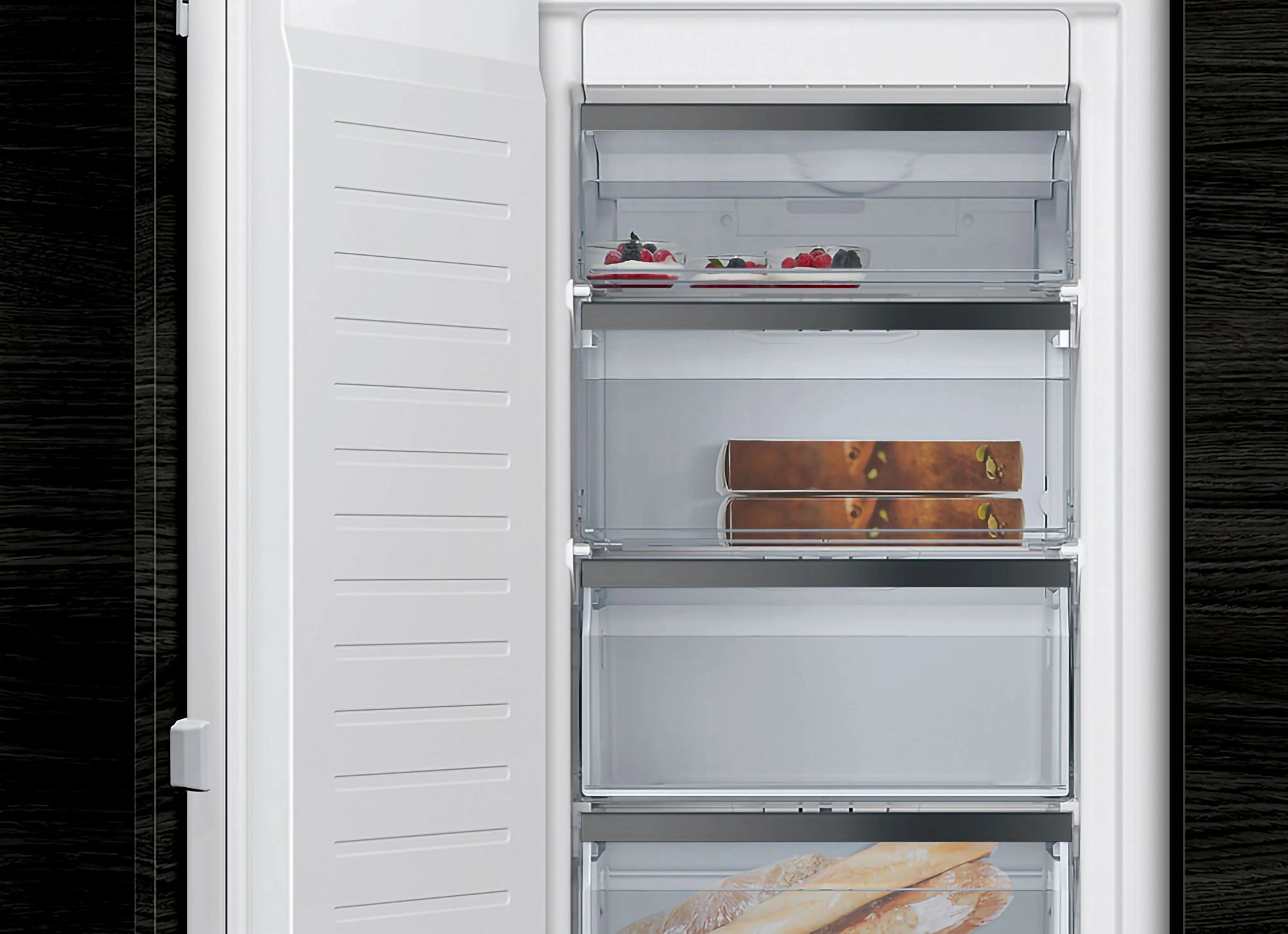 Der Siemens GI81NSCE0 iQ500 Gefrierschrank ist ein Einbaugerät aus der Premium-Serie studioLine. Auf 212 Liter bietet der Einbaugefrierschrank viel Raum zum Gefrieren von Lebensmitteln. Zu seinen Features gehören die Abtau-Automatik NoFrost, die bigBox zur extra großen Lagerfläche von großem Gefriergut und freshSense Sensoren, die konstant die Innentemperatur messen.