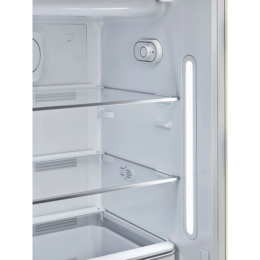 50's Style ist eine Retro Design-Serie von Smeg, die sich durch kurvenreiche Formen und lebhafte Farben auszeichnet. Espressomaschine, Küchenmaschine, Kühlschrank, Dunstabzugshaube, Mixer, Wasserkocher und Toaster erscheinen im Stil der 50er Jahre. Smeg 50's Style Kühlschränke sind Made in Italy und verkörpern italienisches Design plus technische Spitzenleistung.