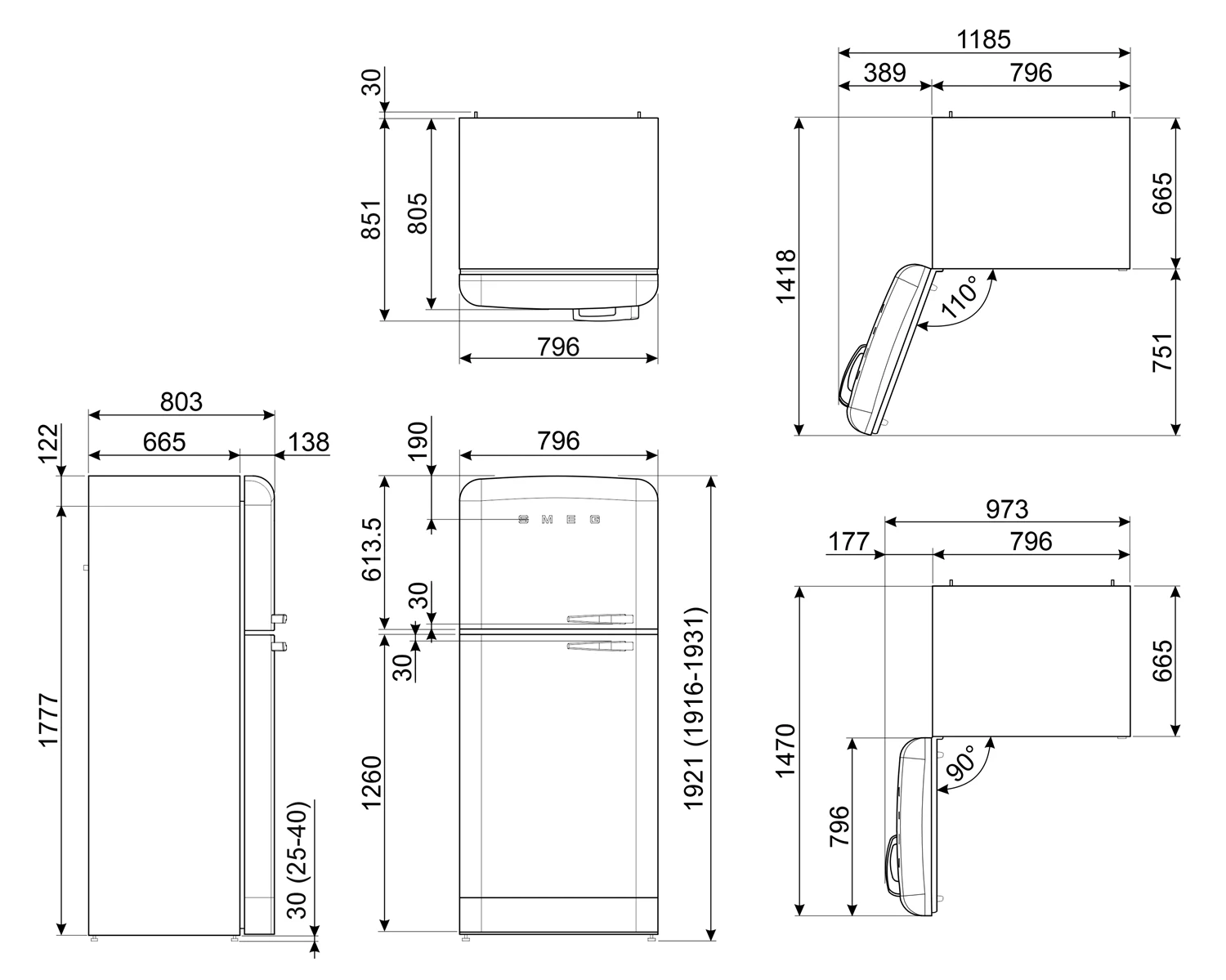 Smeg FAB50LBL5 ist eine freistehende schwarze Kühl-Gefrierschrank-Kombination in 80 cm mit zwei nach links öffnenden Türen (Linksanschlag). Der FAB50 Retro Stand-Kühlschrank besitzt moderne Funktionen, wie z.B. No Frost im Gefrierfach, eine 0° Zone für Obst- und Gemüse, die Multiflow-Umluftkühlung und einen manuellen Eiswürfelzubereiter. Das Volumen beträgt 400 Liter im Kühlschrank und 124 Liter im Gefrierschrank.