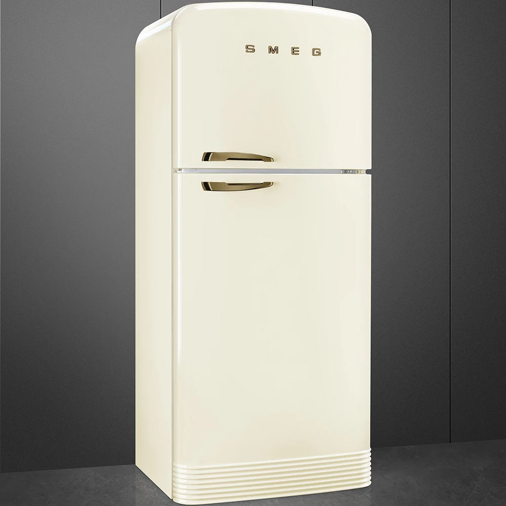 Smeg FAB50RCRB5 Retro Kühl-Gefrierschrank-Kombination in 80 cm Creme/Messing Antik mit Rechtsanschlag