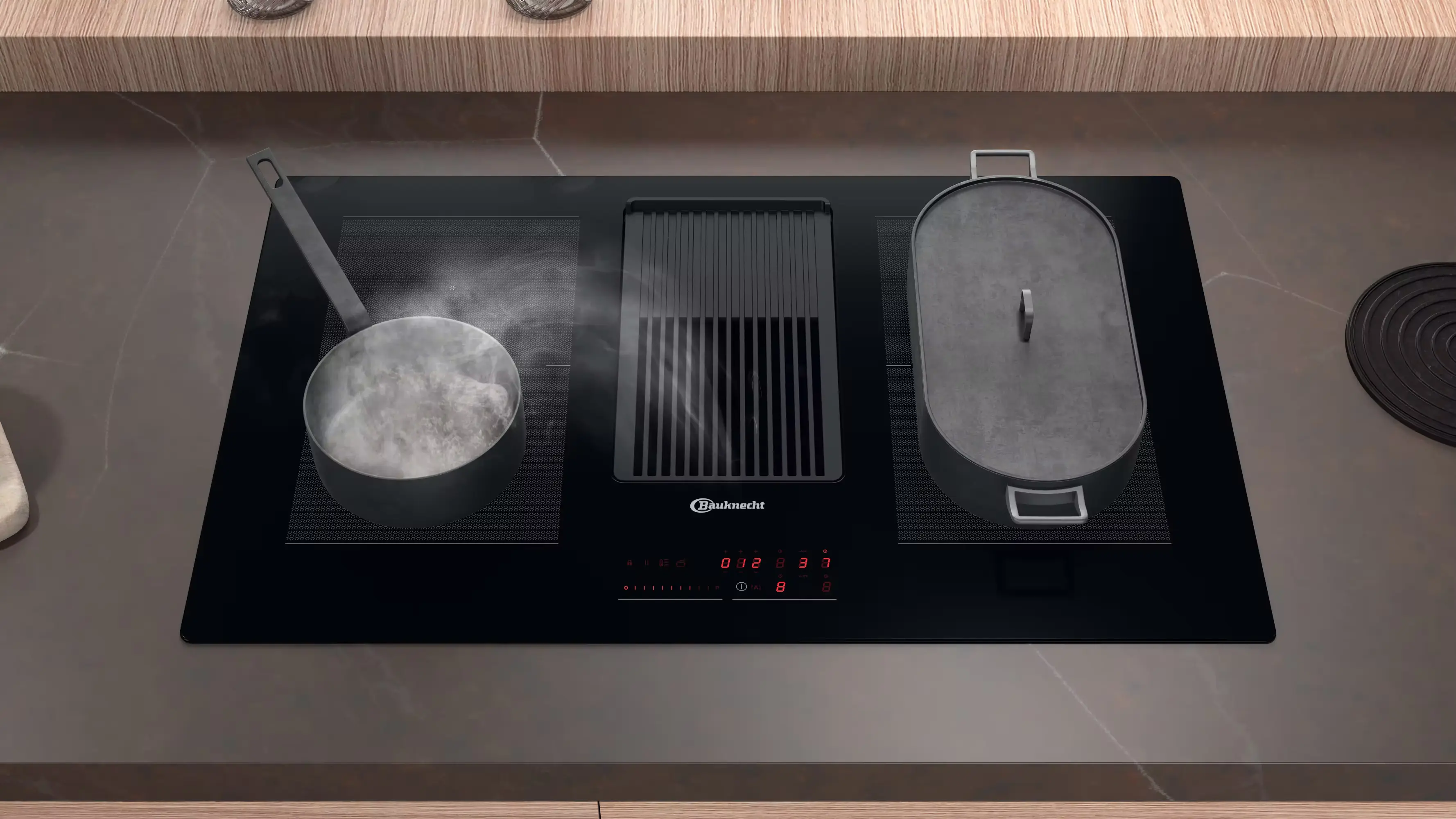 - Digitalanzeige der eingestellten Leistung für jede Kochzone
